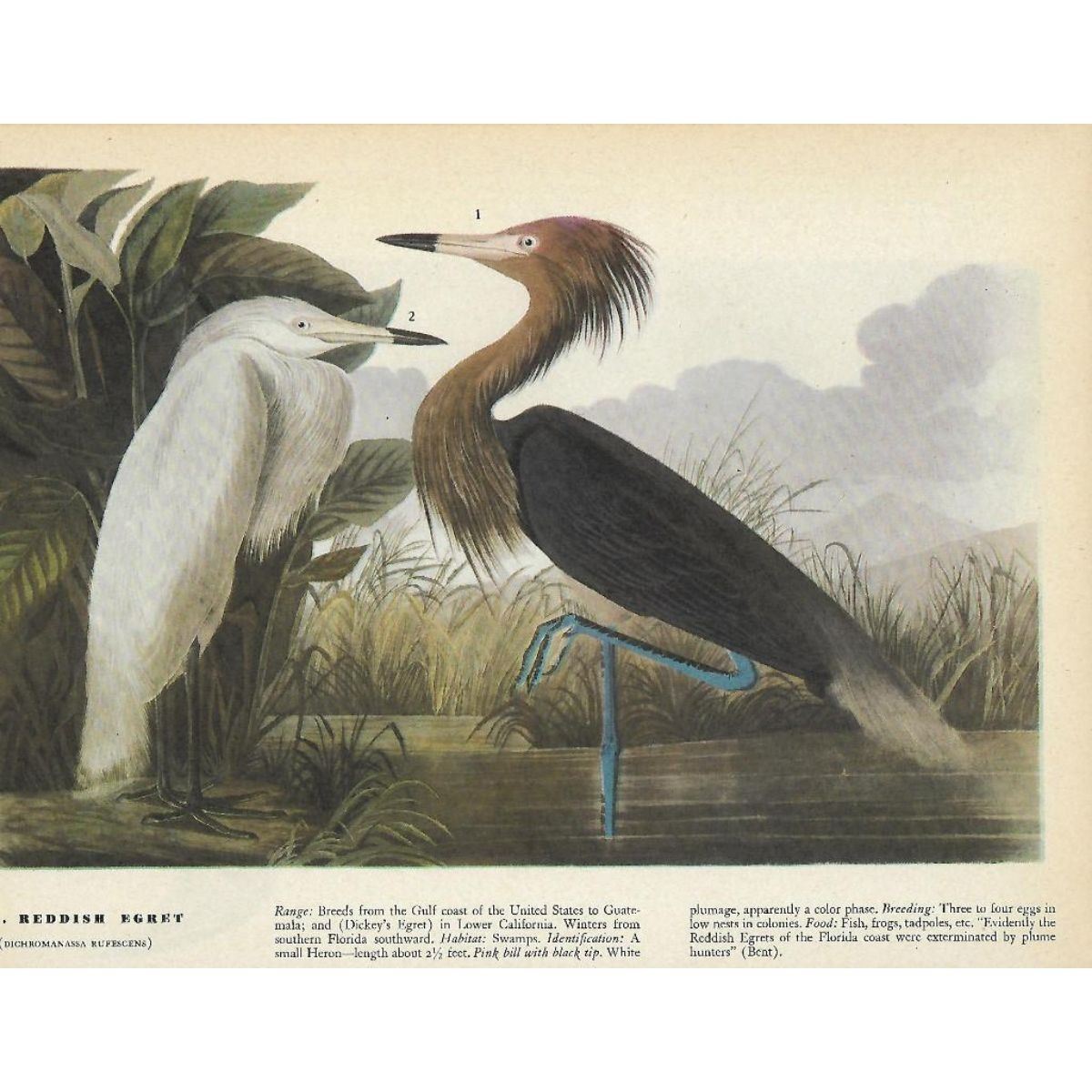 John James Audubon, book plate print, # 256 Reddish Egret, taken from a 1946 edition of "The Birds Of America." 8 1/2" X 11". Comes with 11" X 14" mat.