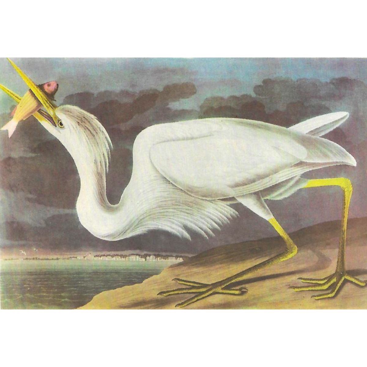John James Audubon, book plate print, #281 Great White Heron, taken from a 1946 edition of "The Birds Of America". 8 1/2" X 11 1/2". Comes with 11" X 14" mat for framing.