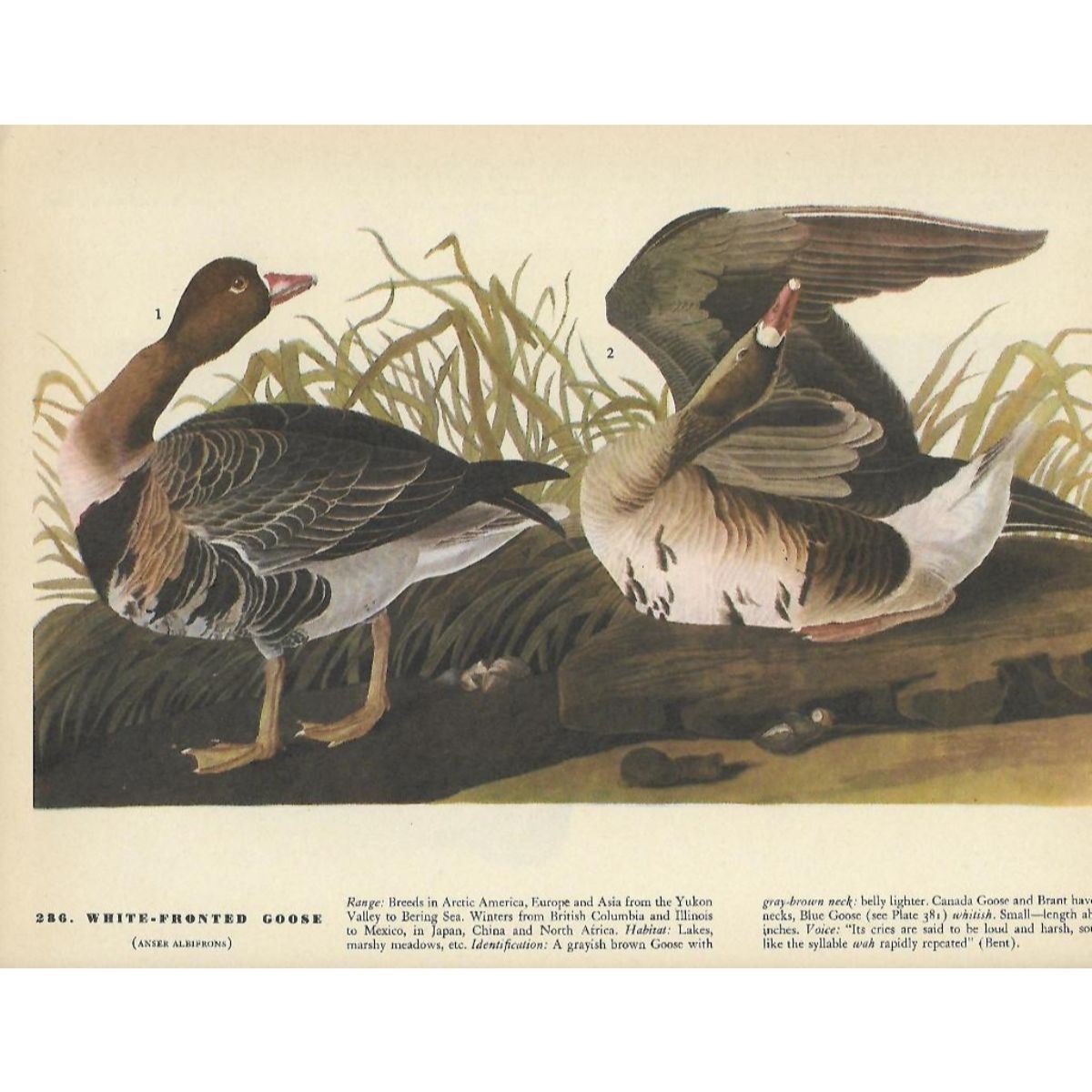 John James Audubon, book plate print, #286 White-Fronted Goose, taken from a 1946 edition of "The Birds Of America". 8 1/2" X 11 1/2". Comes with 11" X 14" mat for framing. Â