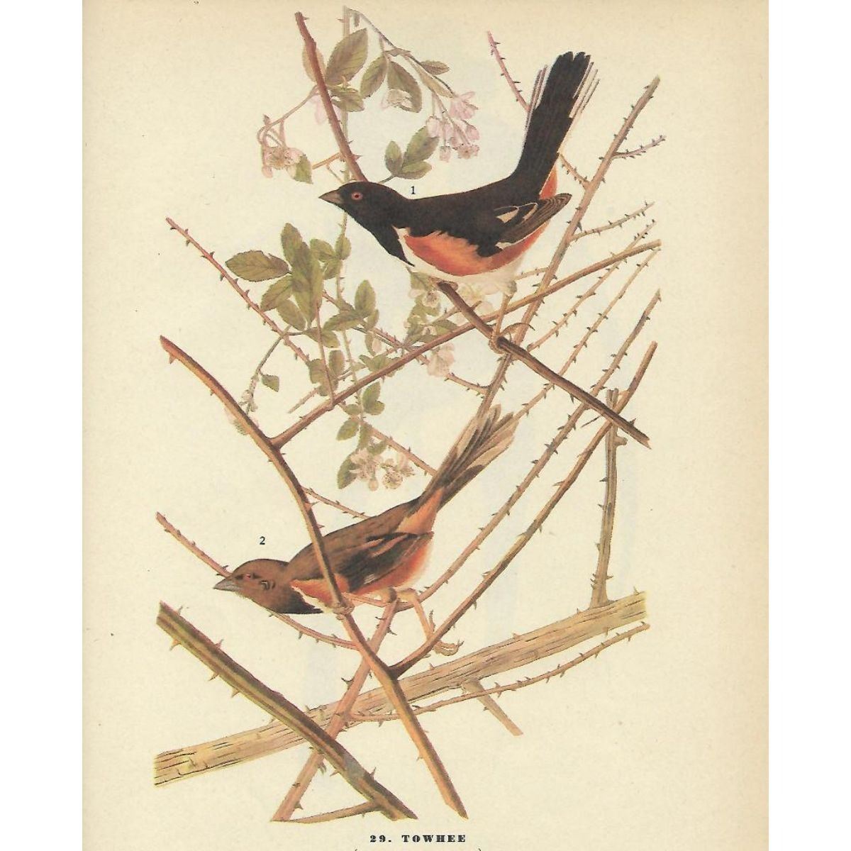 John James Audubon, bookplate print, #29 Towhee, taken from a 1946 edition of "The Birds Of America". 8 1/2" X 11 1/2". Comes with 11" X 14" mat for framing.