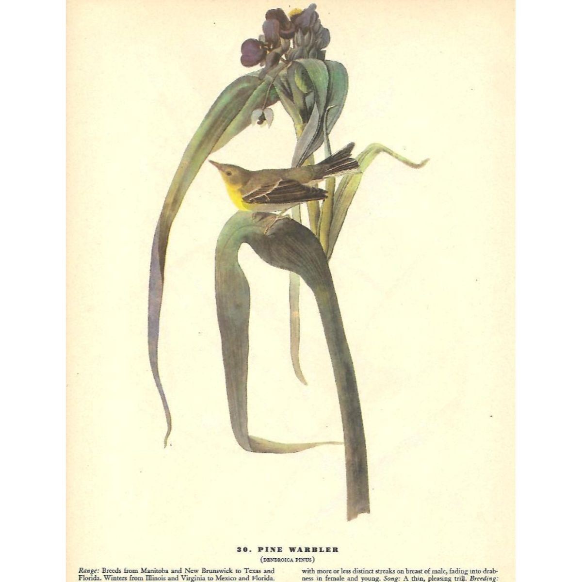 John James Audubon, book plate print, #30 Pine Warbler, taken from a 1946 edition of "The Birds Of America." 8 1/2" X 11". Comes with 11" X 14" mat.