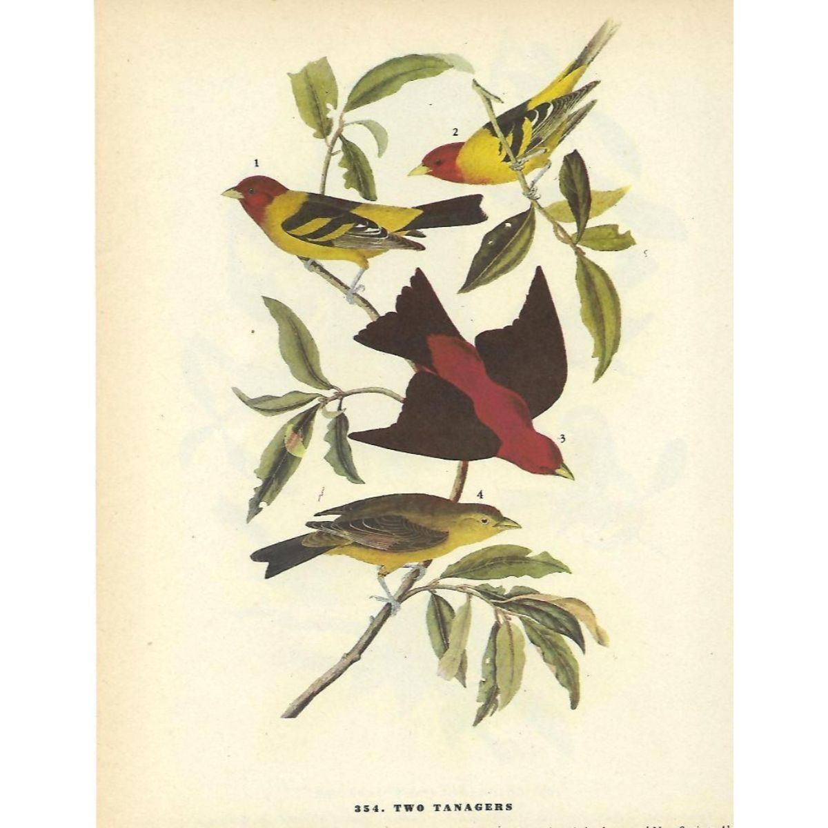 John James Audubon, book plate print, # 354 Two Tanagers, taken from a 1946 edition of "The Birds Of America." 8 1/2" X 11". Comes with 11" X 14" mat.