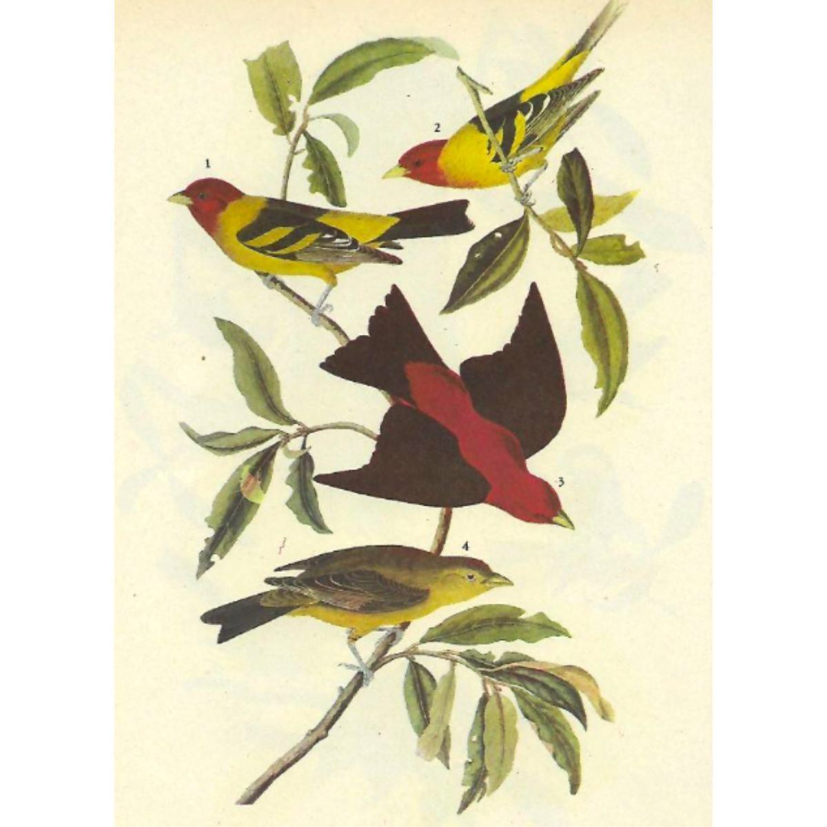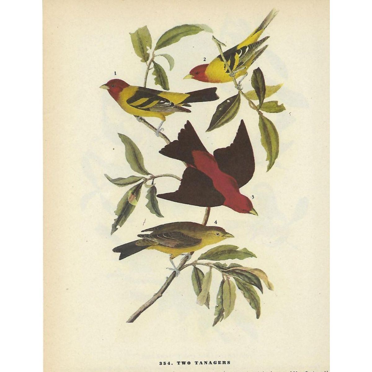 John James Audubon, book plate print, # 354 Two Tanagers, taken from a 1946 edition of "The Birds Of America." 8 1/2" X 11". Comes with 11" X 14" mat.
