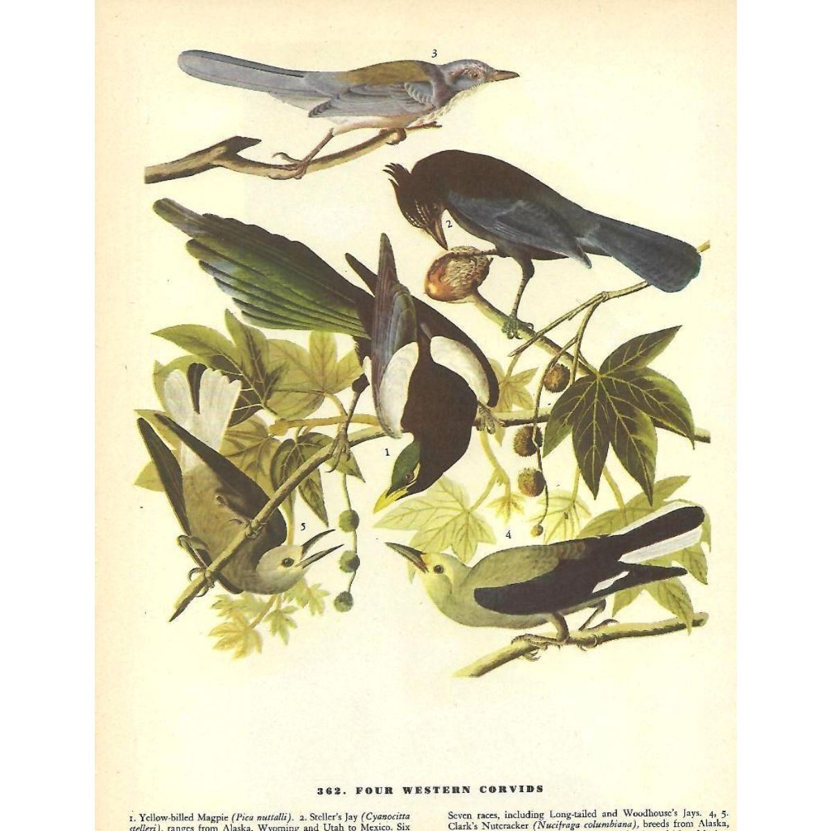John James Audubon, book plate print, # 362 Four Western Corvids, taken from a 1946 edition of "The Birds Of America." 8 1/2" X 11". Comes with 11" X 14" mat.