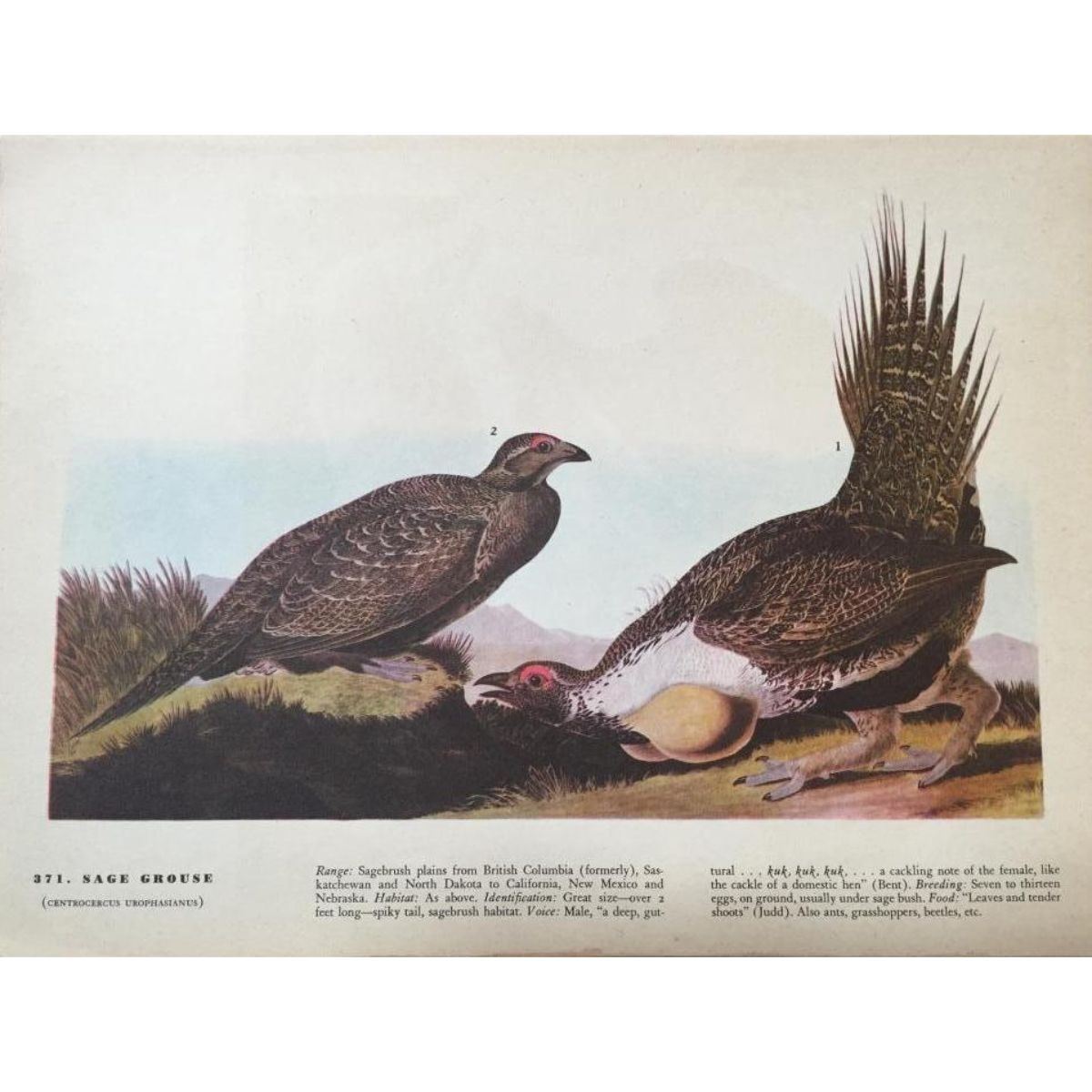 John James Audubon, book plate print, #371 Sage Grouse, taken from a 1946 edition of "The Birds of America".8 1/2" X 11" print. Comes with 11" X 14" mat.