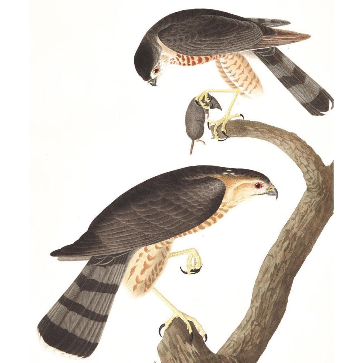 John James Audubon, book plate print, # 374 Sharp-Shinned Hawk, taken from a 1946 edition of "The Birds Of America". 8 1/2" X 11 1/2". Comes with 11" X 14" mat. Â