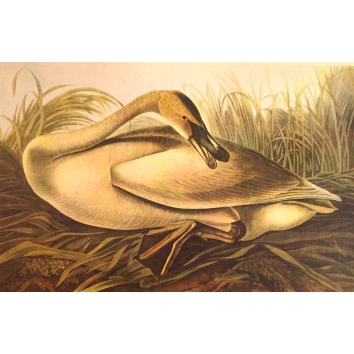 Audubon book plate print from a 1946 edition of "The Birds Of America." # 376 or #406, Trumpeter Swan. 8 1/2" X 11 1/2". Comes with an 11" X 14" mat for framing.