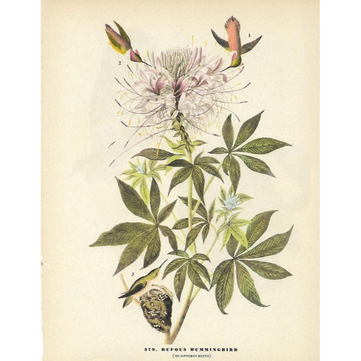 John James Audubon, book plate print, # 379 Rufus Hummingbird, taken from a 1946 edition of "The Birds Of America." 8 1/2" X 11". Comes with 11" X 14" mat.