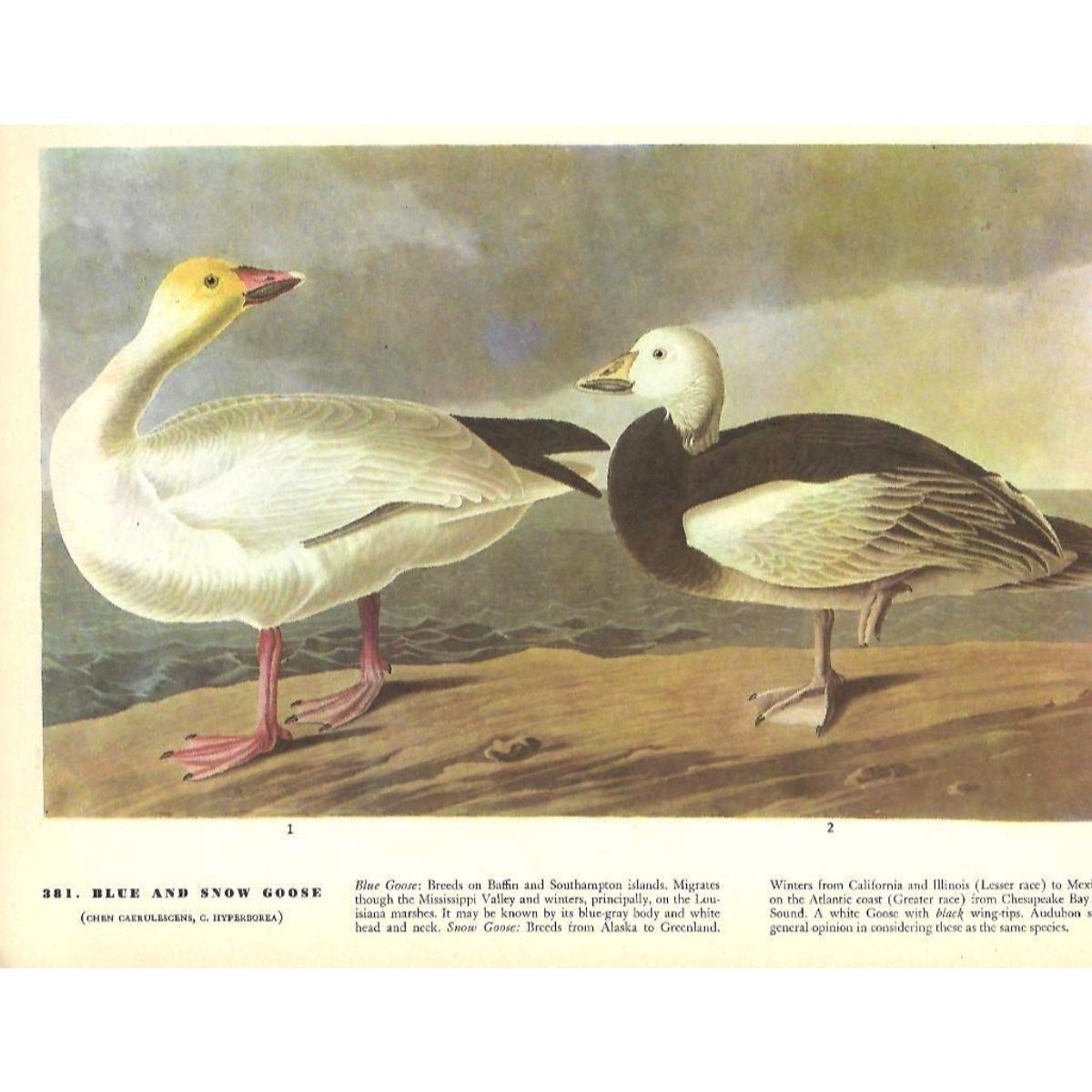 John James Audubon, book plate print, from a 1946 edition of "The Birds of America". #381 Blue and Snow Goose . 8 1/2" X 11 1/2". Comes with 11 X 14" mat.