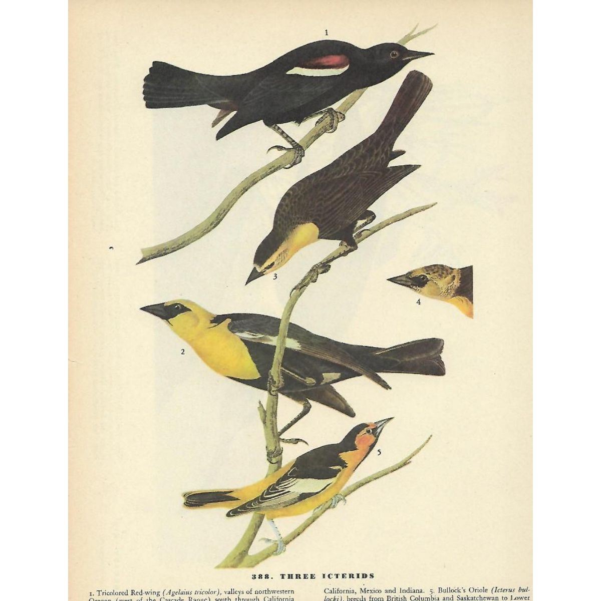 John James Audubon, book plate print, # 388 Three Icterids, taken from a 1946 edition of "The Birds Of America." 8 1/2" X 11". Comes with 11" X 14" mat.