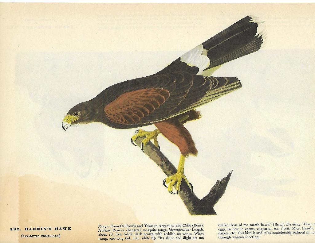 John James Audubon, book plate print, #392 Harris's Hawk, taken from a 1946 edition of "The Birds Of America". 8 1/2" X 11 1/2". Comes with 11" X 14" mat for framing. Â