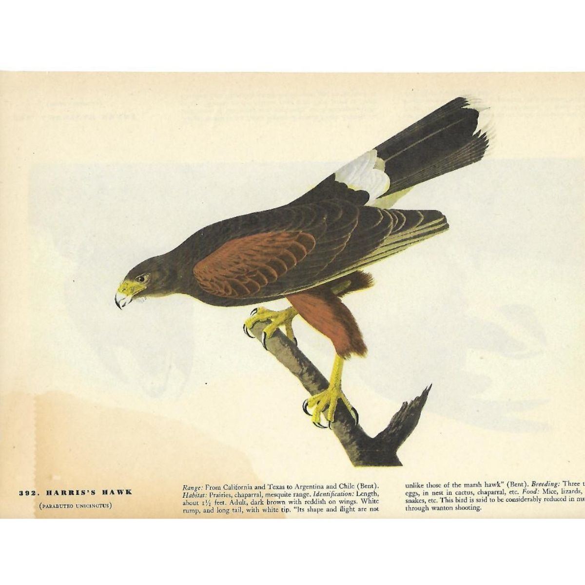 John James Audubon, book plate print, #392 Harris's Hawk, taken from a 1946 edition of "The Birds Of America". 8 1/2" X 11 1/2". Comes with 11" X 14" mat for framing. Â