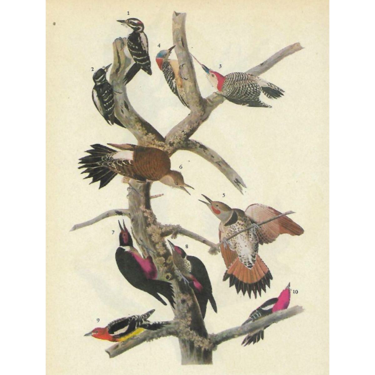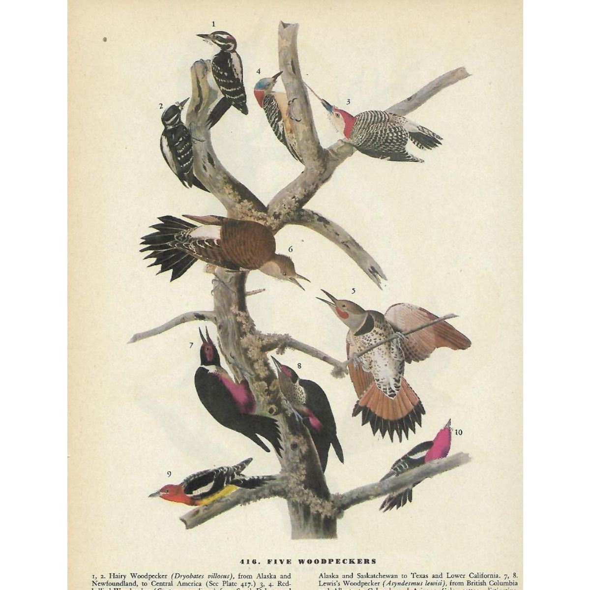 John James Audubon, book plate print, # 416 Five Woodpeckers, taken from a 1946 edition of "The Birds Of America." 8 1/2" X 11". Comes with 11" X 14" mat.