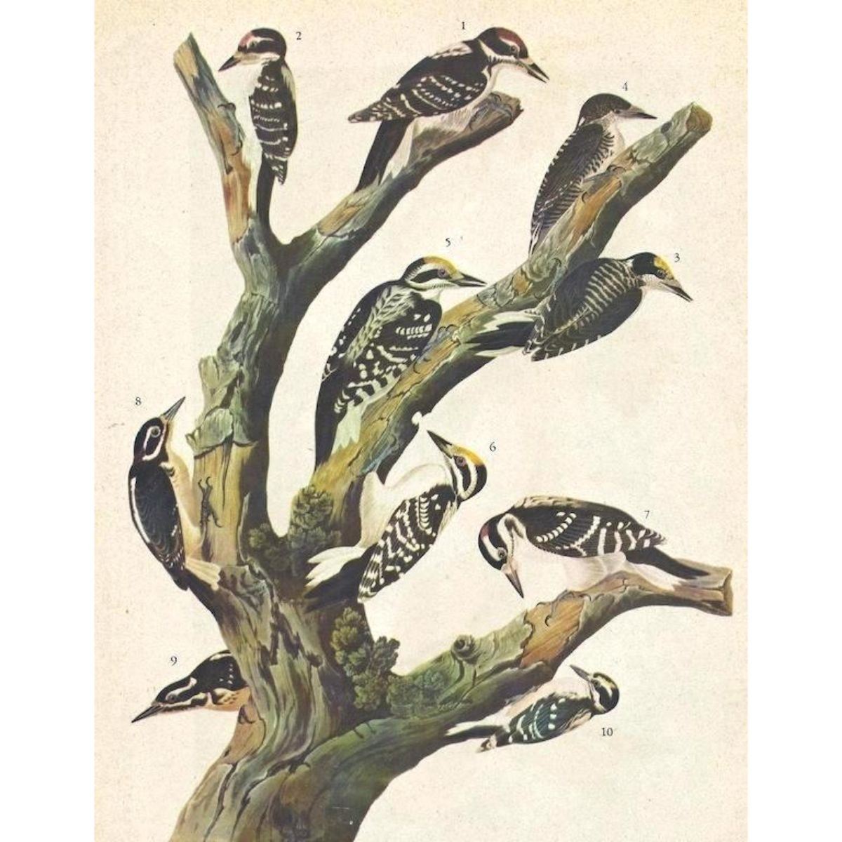 John James Audubon, from The Birds of America. Published c.1946. # 417 Three-toed Woodpecker & Hairy Woodpecker ( Three-toed Woodpecker & Jaoru Woodpecker ). 8 1/2" X 11" image size. Comes with 11" X 14" mat.