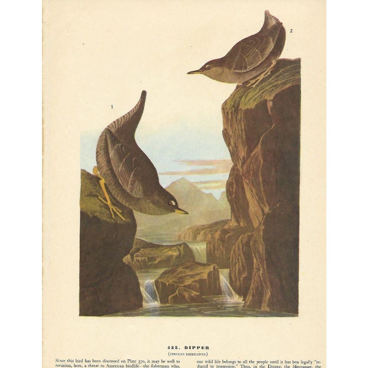 John James Audubon, book plate print, # 435 Dipper, taken from a 1946 edition of "The Birds Of America". 8 1/2" X 11 1/2". Comes with 11" X 14" mat. Â