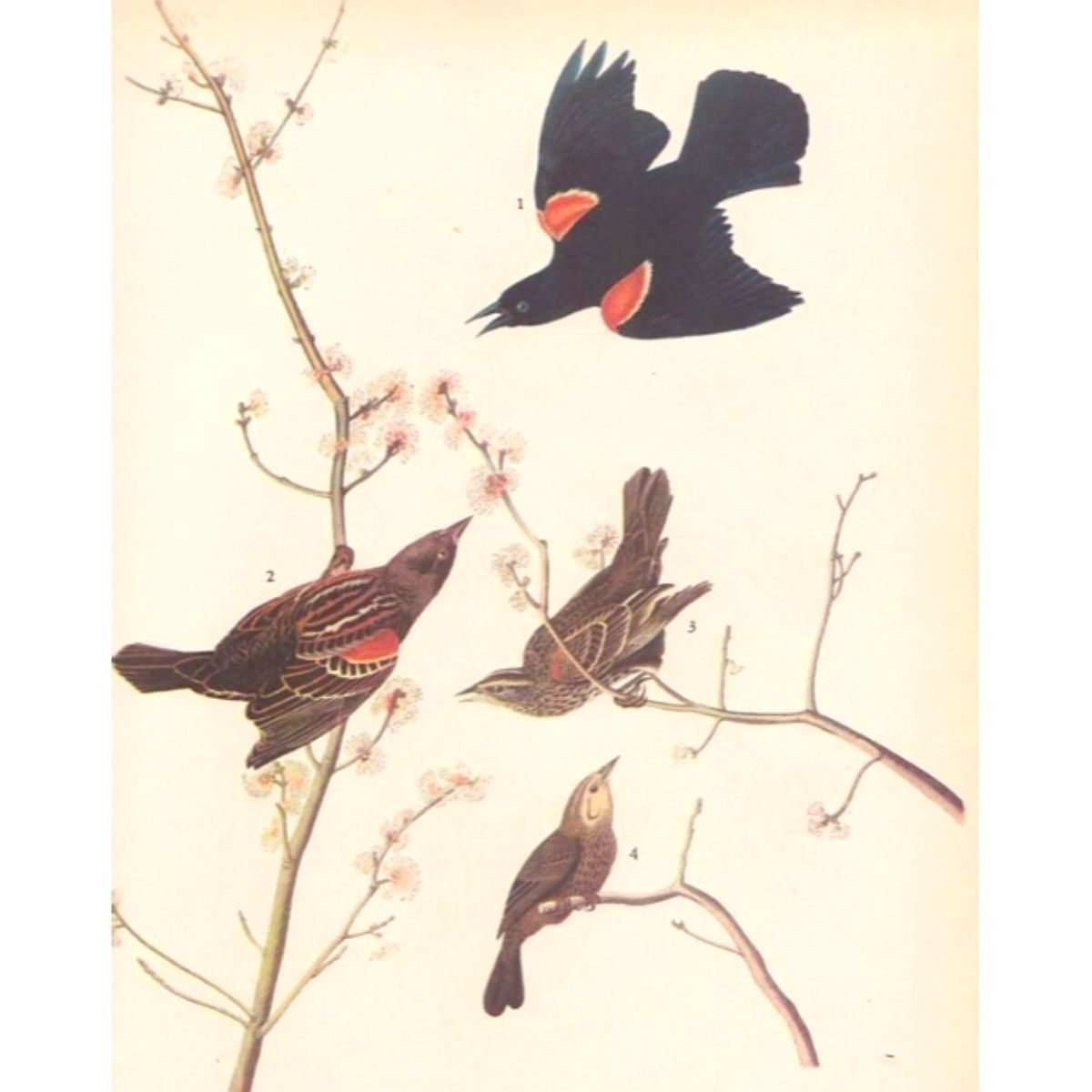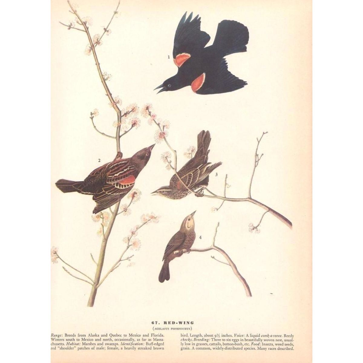 John James Audubon, book plate print, # #67 Red-Wing, taken from a 1946 edition of "The Birds Of America". 8 1/2" X 11 1/2". Comes with 11" X 14" mat. Â