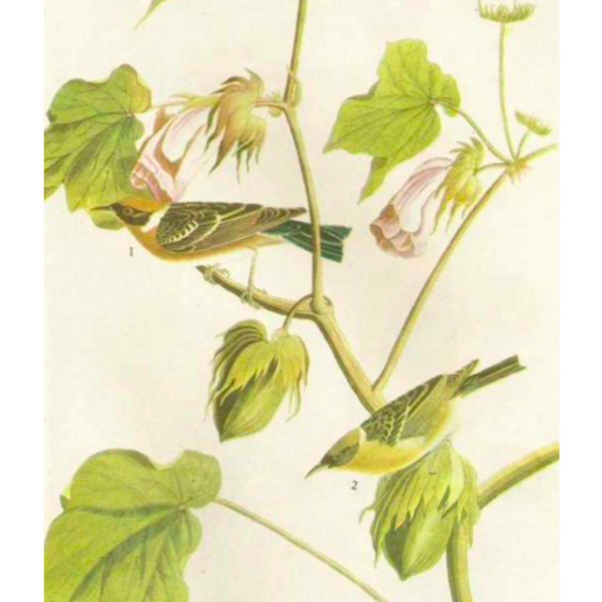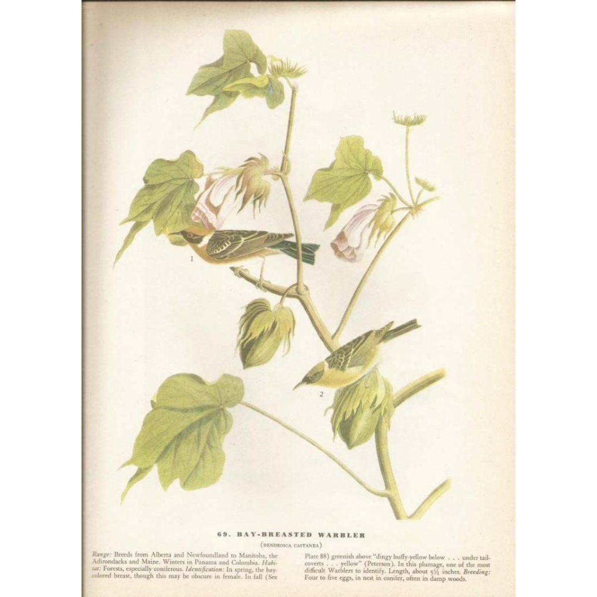 John James Audubon, book plate print, # 69 Bay-Breasted Warbler, taken from a 1946 edition of "The Birds Of America". 8 1/2" X 11 1/2". Comes with 11" X 14" mat. Â