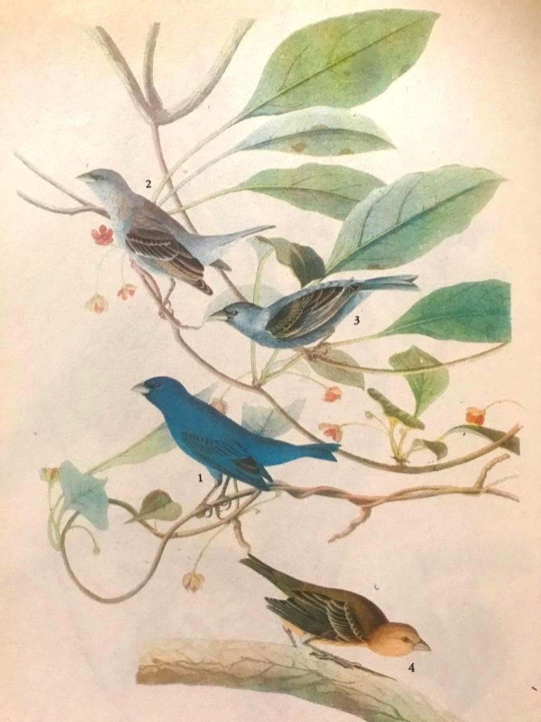John James Audubon, book plate print, # 74 Indigo Bunting, taken from a 1946 edition of "The Birds Of America". 8 1/2" X 11 1/2". Comes with 11" X 14" mat. Â