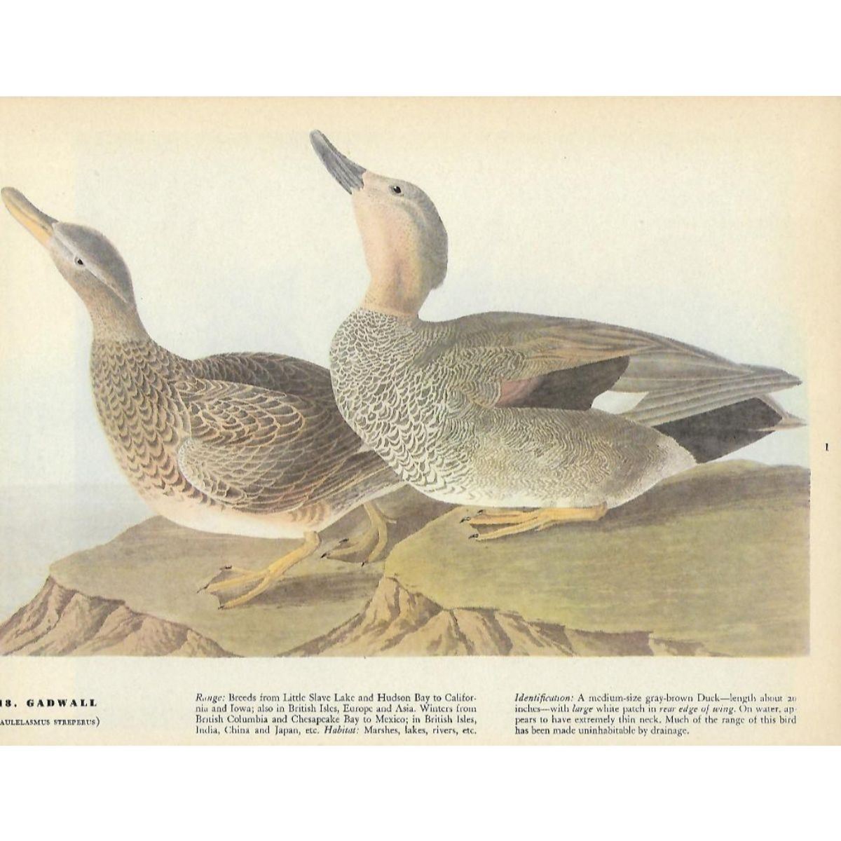 John James Audubon, book plate print, # 348 Gadwall, taken from a 1946 edition of "The Birds Of America." 8 1/2" X 11". Comes with 11" X 14" mat.