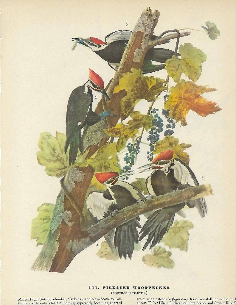John James Audubon, book plate print, # 111 Pileated Woodpecker, taken from a 1946 edition of "The Birds Of America." 8 1/2" X 11". Comes with 11" X 14" mat.