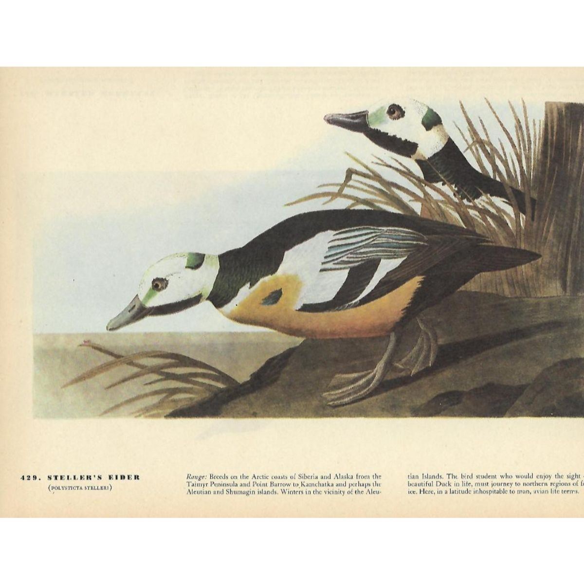 John James Audubon, book plate print, # 429 Steller's Eider, taken from a 1946 edition of "The Birds Of America." 8 1/2" X 11". Comes with 11" X 14" mat.