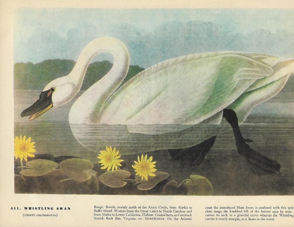 John James Audubon, book plate print, from a 1946 edition of "The Birds of America". #411 Whistling Swan. 8 1/2" X 11 1/2". Comes with 11 X 14" mat.