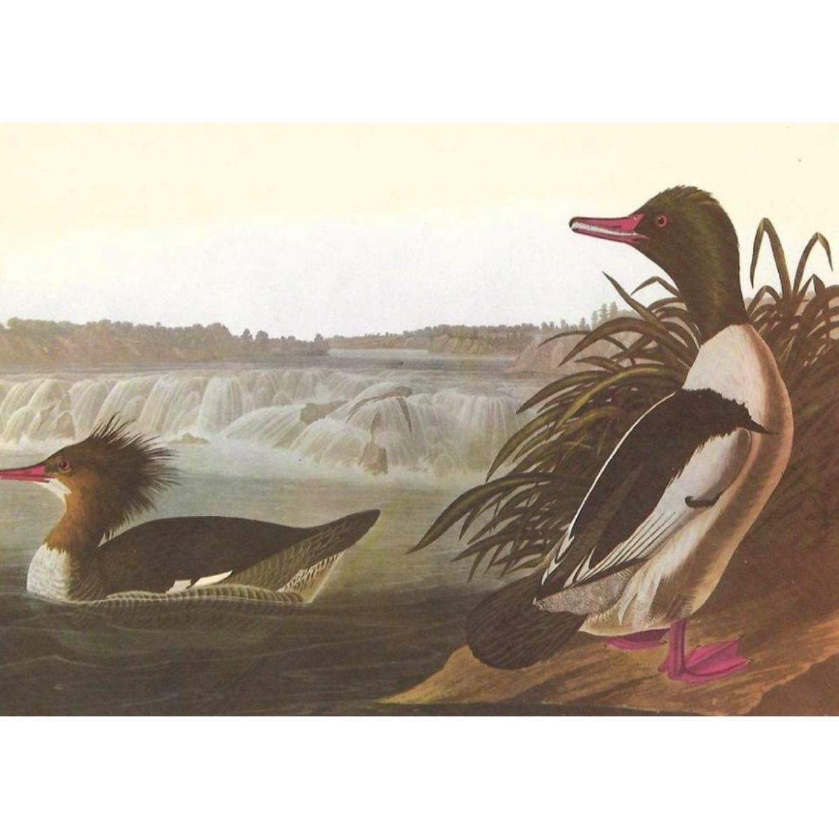 c.1950 Audubon print, American Merganser - vintage print, from the collection, "Audubon - Fifty Selections with Commentaries by Roger Tory Peterson". 9" X 12" print size. Comes with 11" X 14" mat board.Â