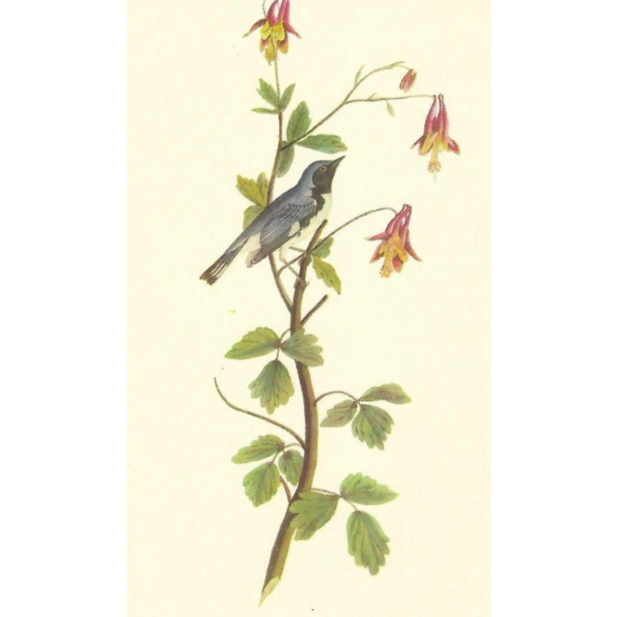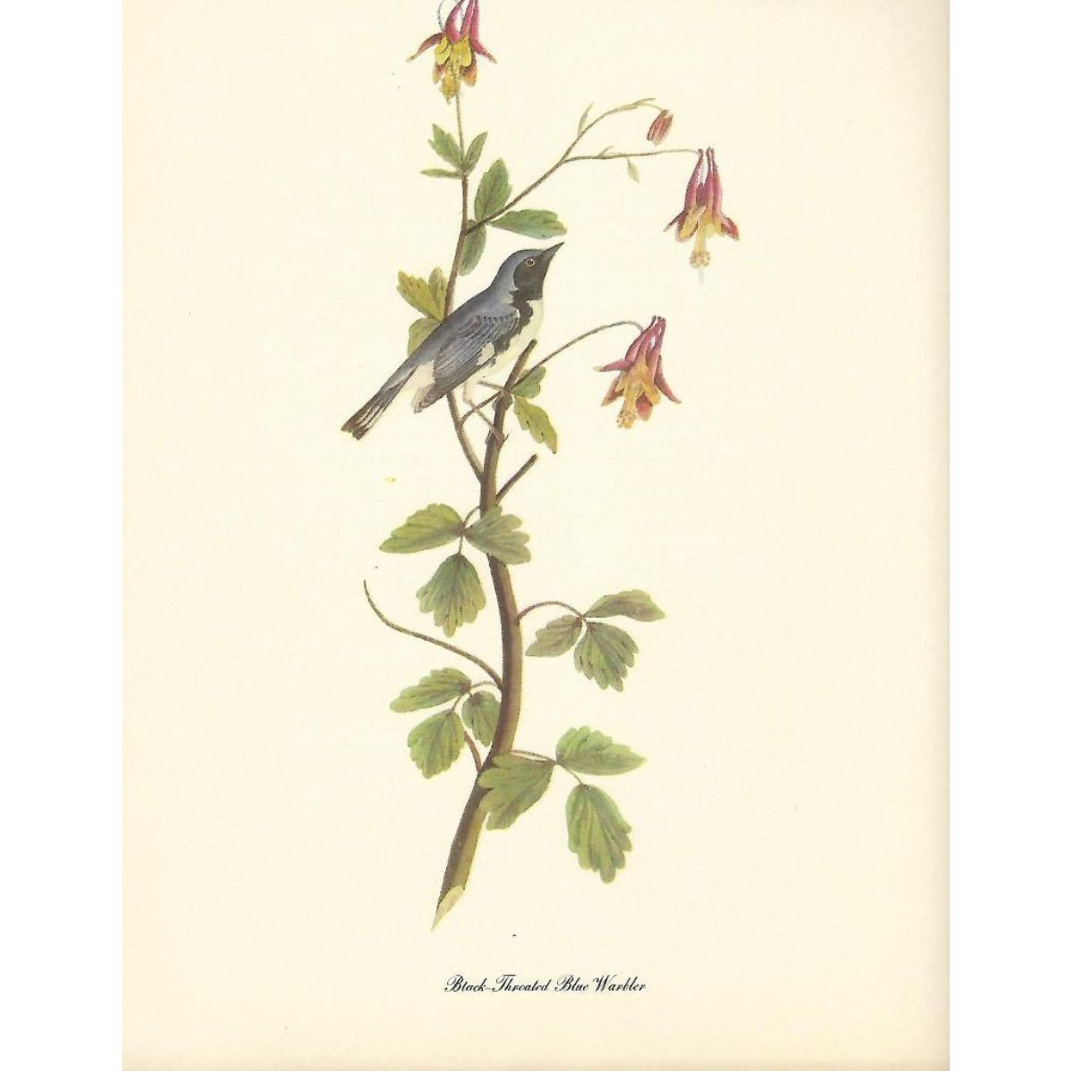 c1950 Audubon print, Black Throated Blue Warbler - vintage print, from the collection, " Audubon - Fifty Selections With Commentaries by Roger Tory Peterson". 9" X 12" print size. Comes with 11" X 14" mat board.