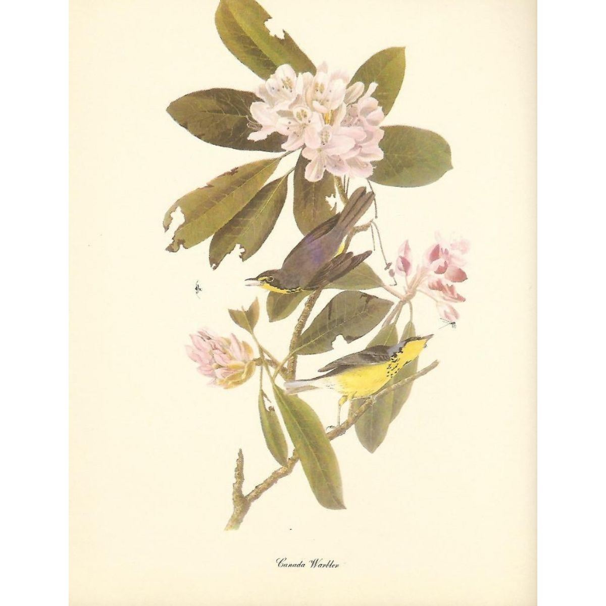 c1950 Audubon print, Canadian Warbler- vintage print, from the collection, " Audubon - Fifty Selections With Commentaries by Roger Tory Peterson". 9" X 12" print size. Comes with 11" X 14" mat board.