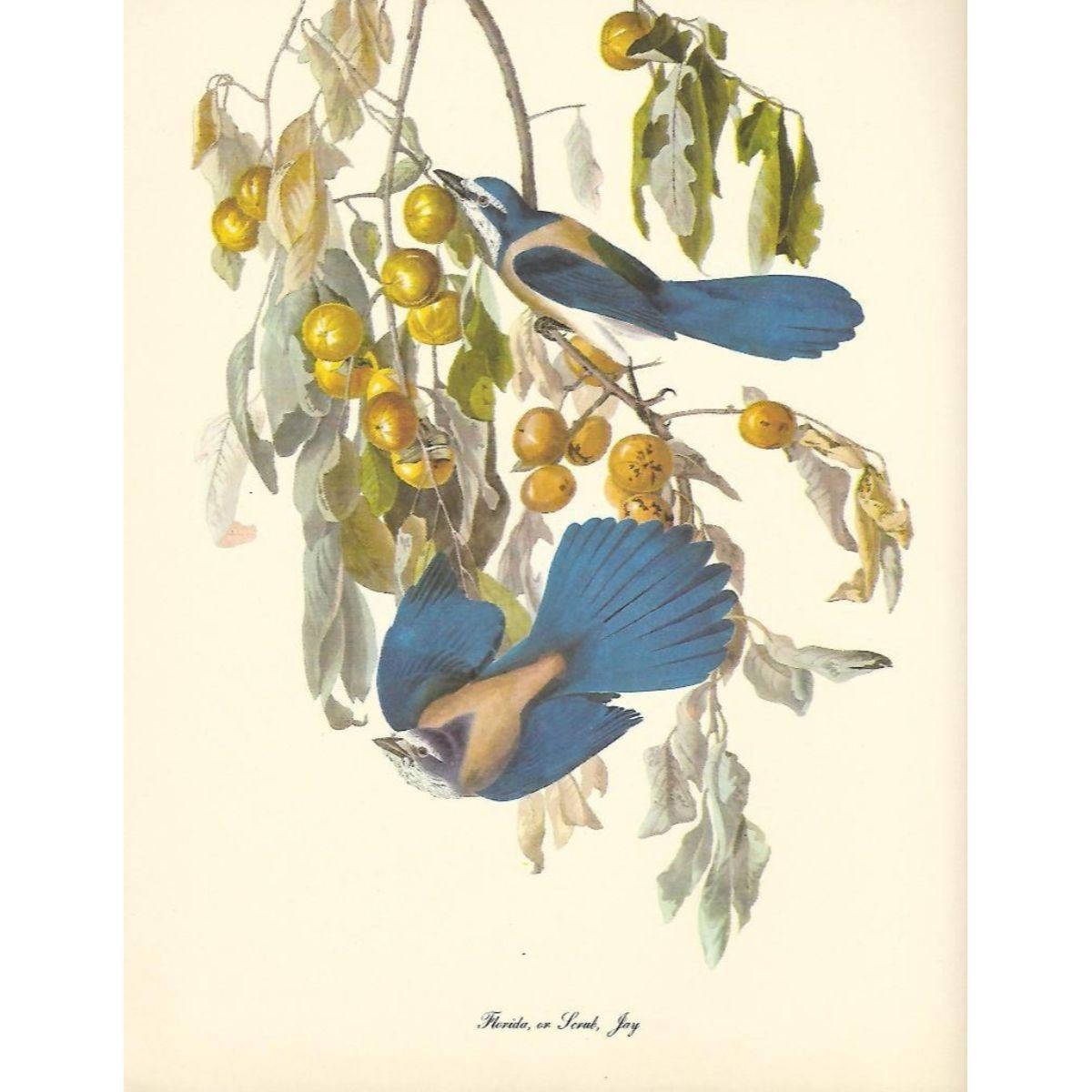 c1950 Audubon print, Florida or Scrub Jay - vintage print, from the collection, " Audubon - Fifty Selections With Commentaries by Roger Tory Peterson". 9" X 12" print size. Comes with 11" X 14" mat board.
