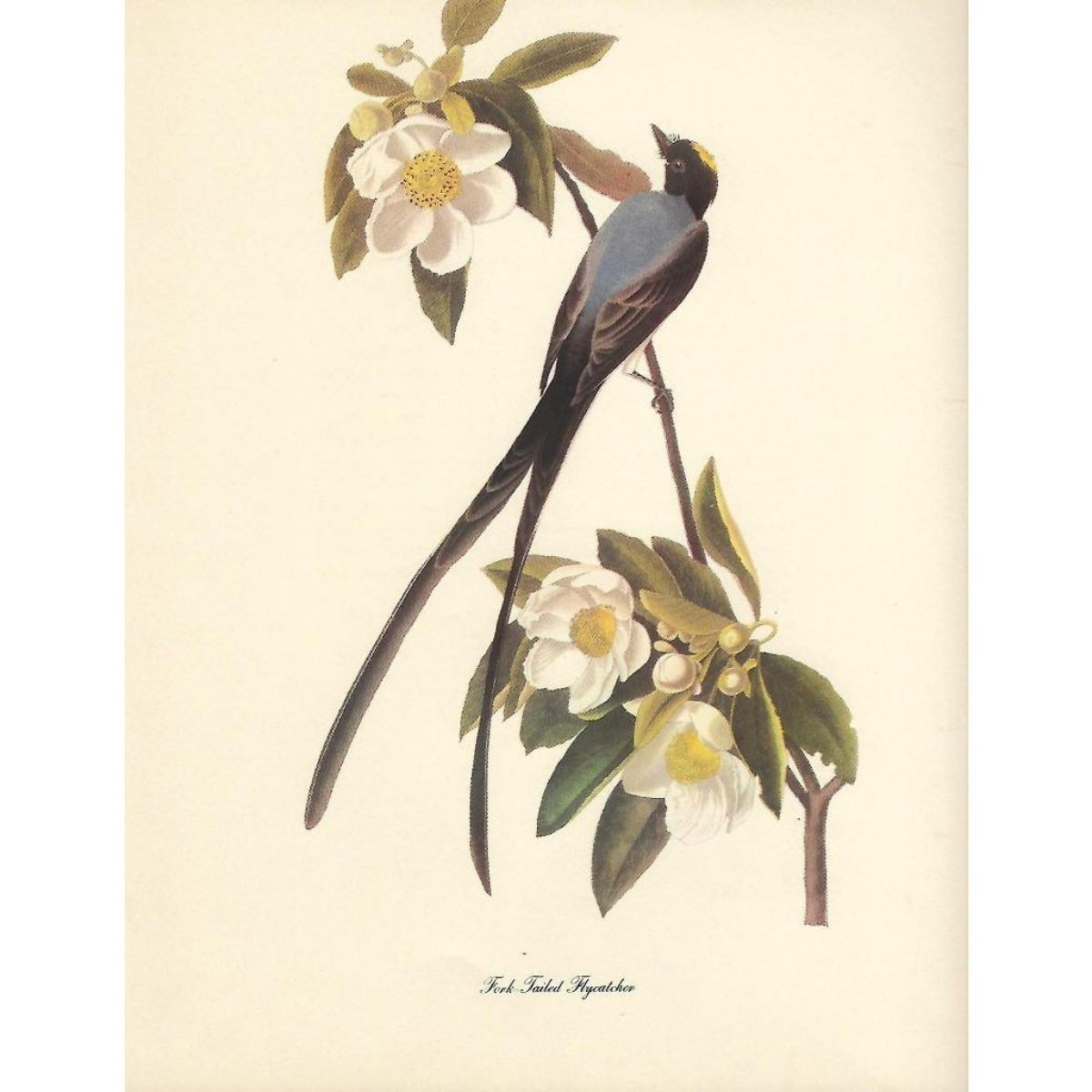 c1950 Audubon print, Fork-Tailed Flycatcher - vintage print, from the collection, " Audubon - Fifty Selections With Commentaries by Roger Tory Peterson". 9" X 12" print size. Comes with 11" X 14" mat board.