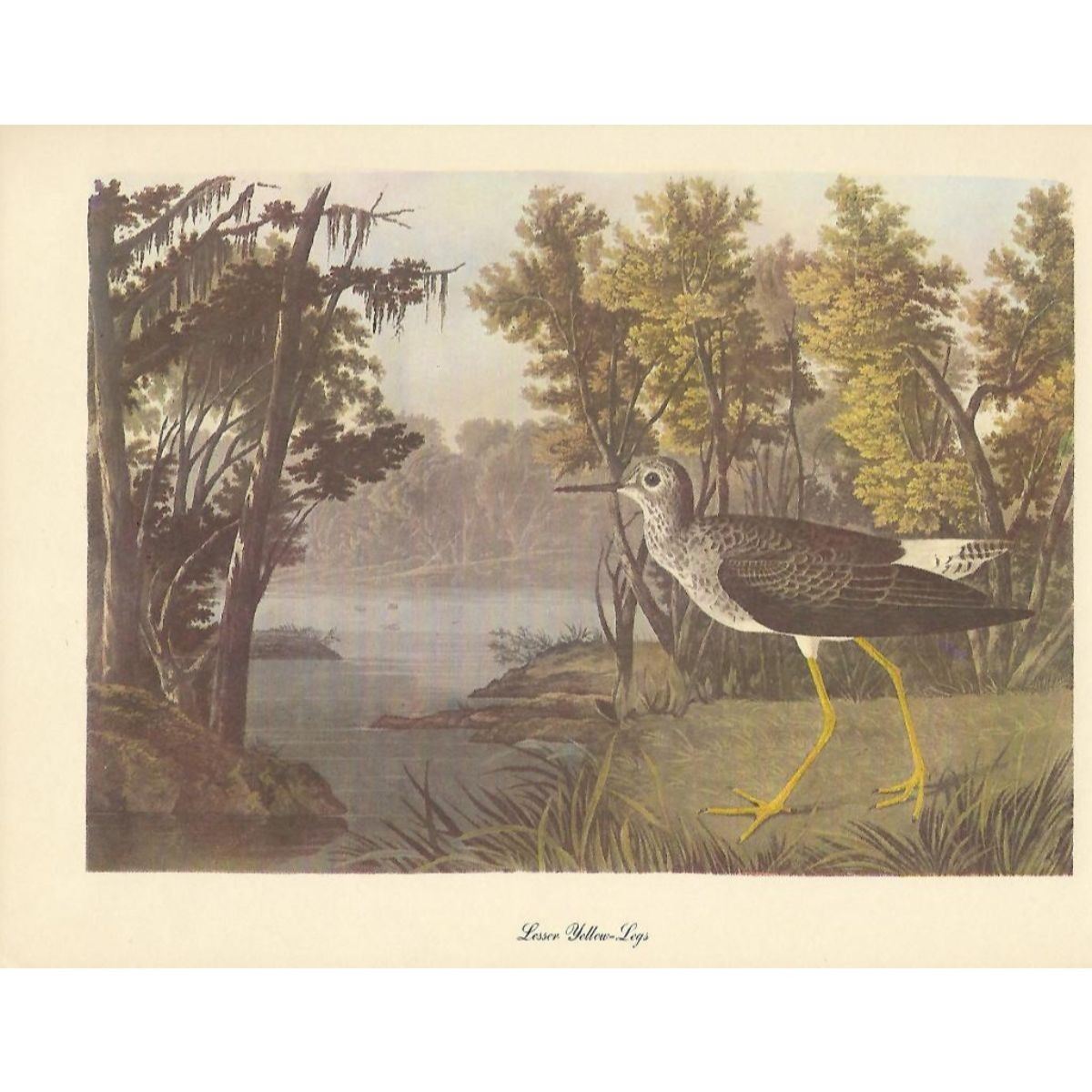 c1950 Audubon print, Lesser Yellow-Legs - vintage print, from the collection, " Audubon - Fifty Selections With Commentaries by Roger Tory Peterson". 9" X 12" print size. Comes with 11" X 14" mat board.