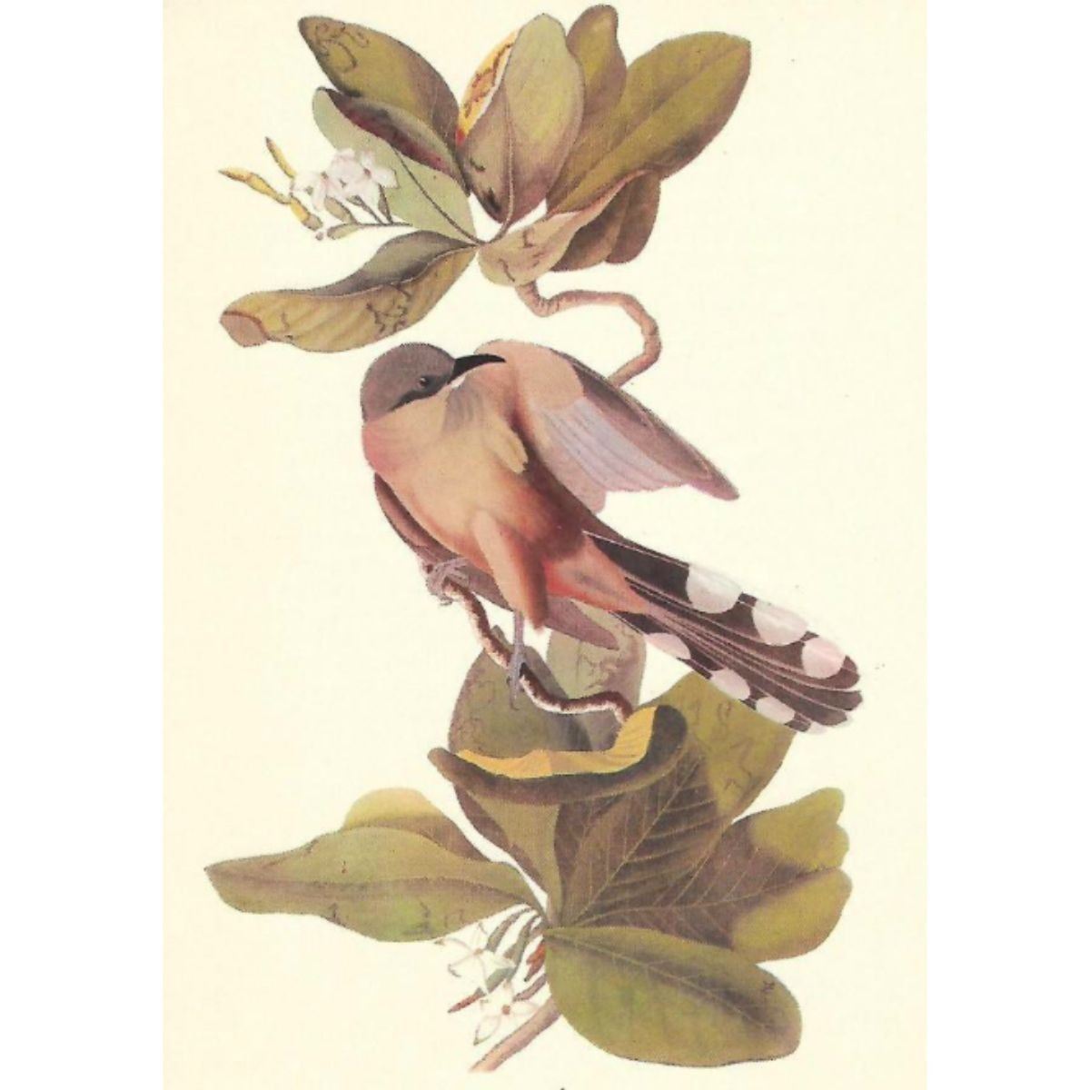 c1950 Audubon print, Mangrove Cuckoo- vintage print, from the collection, " Audubon - Fifty Selections With Commentaries by Roger Tory Peterson". 9" X 12" print size. Comes with 11" X 14" mat board.