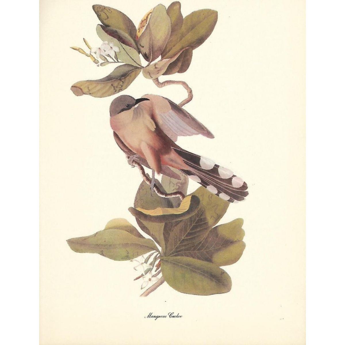 c1950 Audubon print, Mangrove Cuckoo- vintage print, from the collection, " Audubon - Fifty Selections With Commentaries by Roger Tory Peterson". 9" X 12" print size. Comes with 11" X 14" mat board.