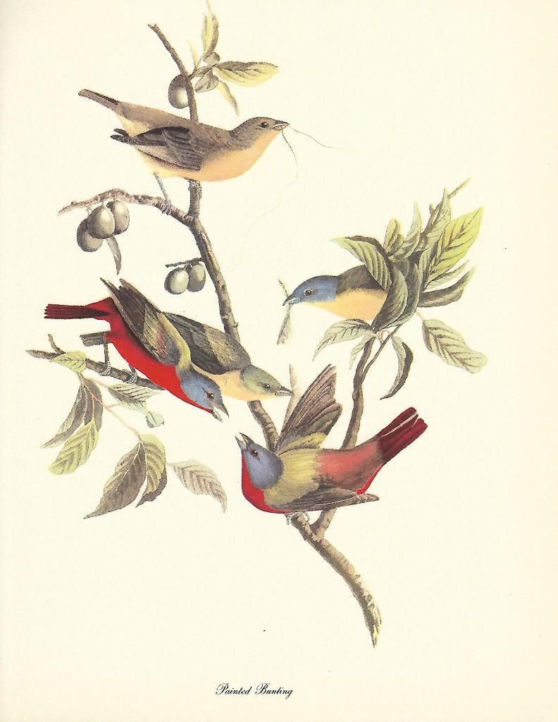 c1950 Audubon print, Painted Bunting - vintage print, from the collection, " Audubon - Fifty Selections With Commentaries by Roger Tory Peterson". 9" X 12" print size. Comes with 11" X 14" mat board.