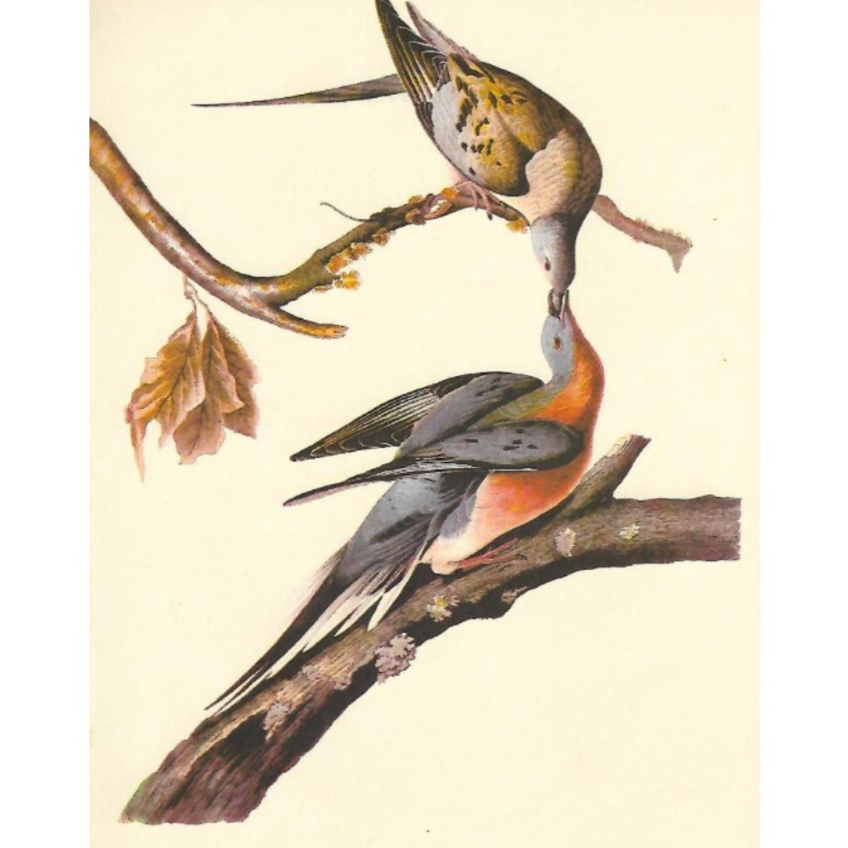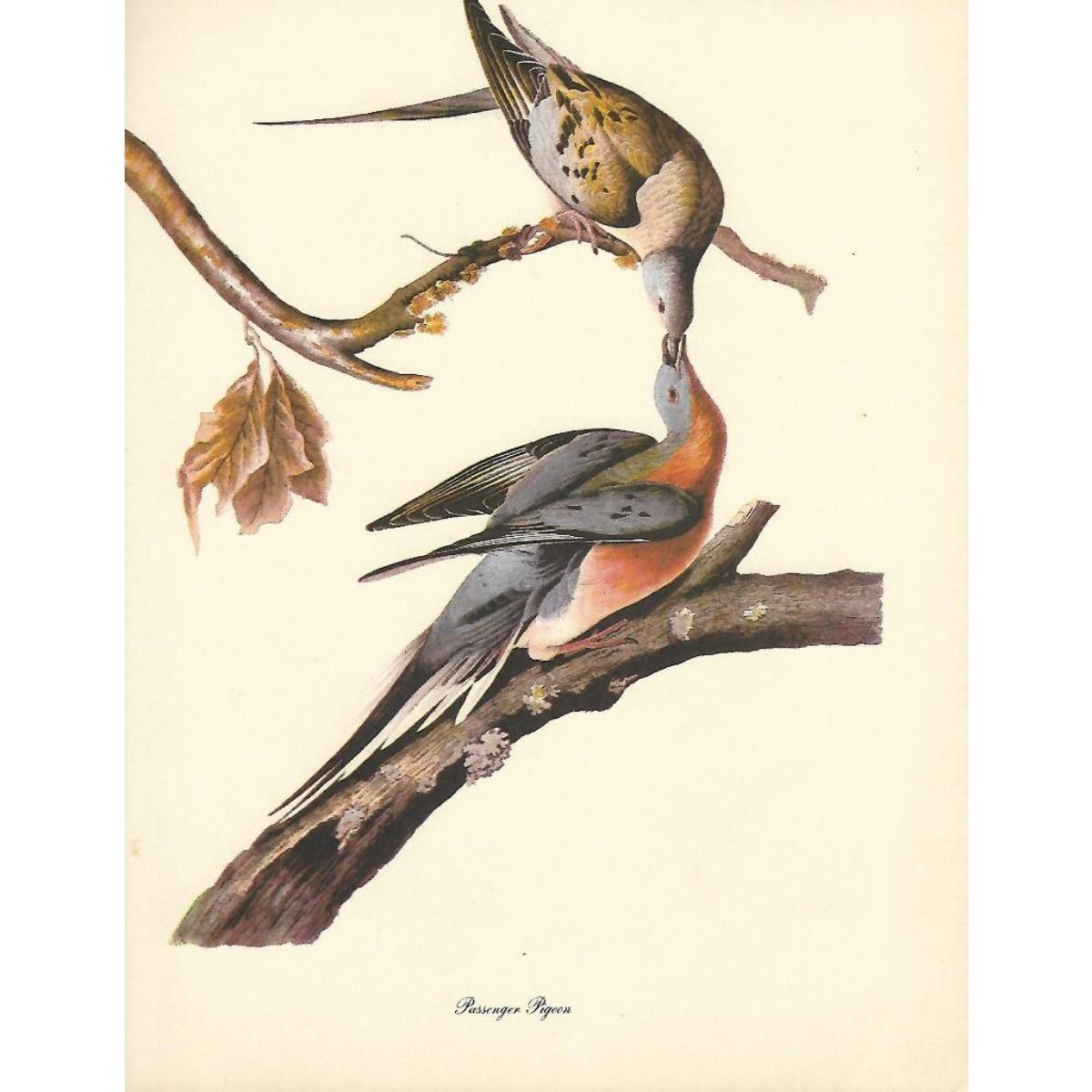 c1950 Audubon print, Passenger Pigeon - vintage print, from the collection, " Audubon - Fifty Selections With Commentaries by Roger Tory Peterson". 9" X 12" print size. Comes with 11" X 14" mat board.