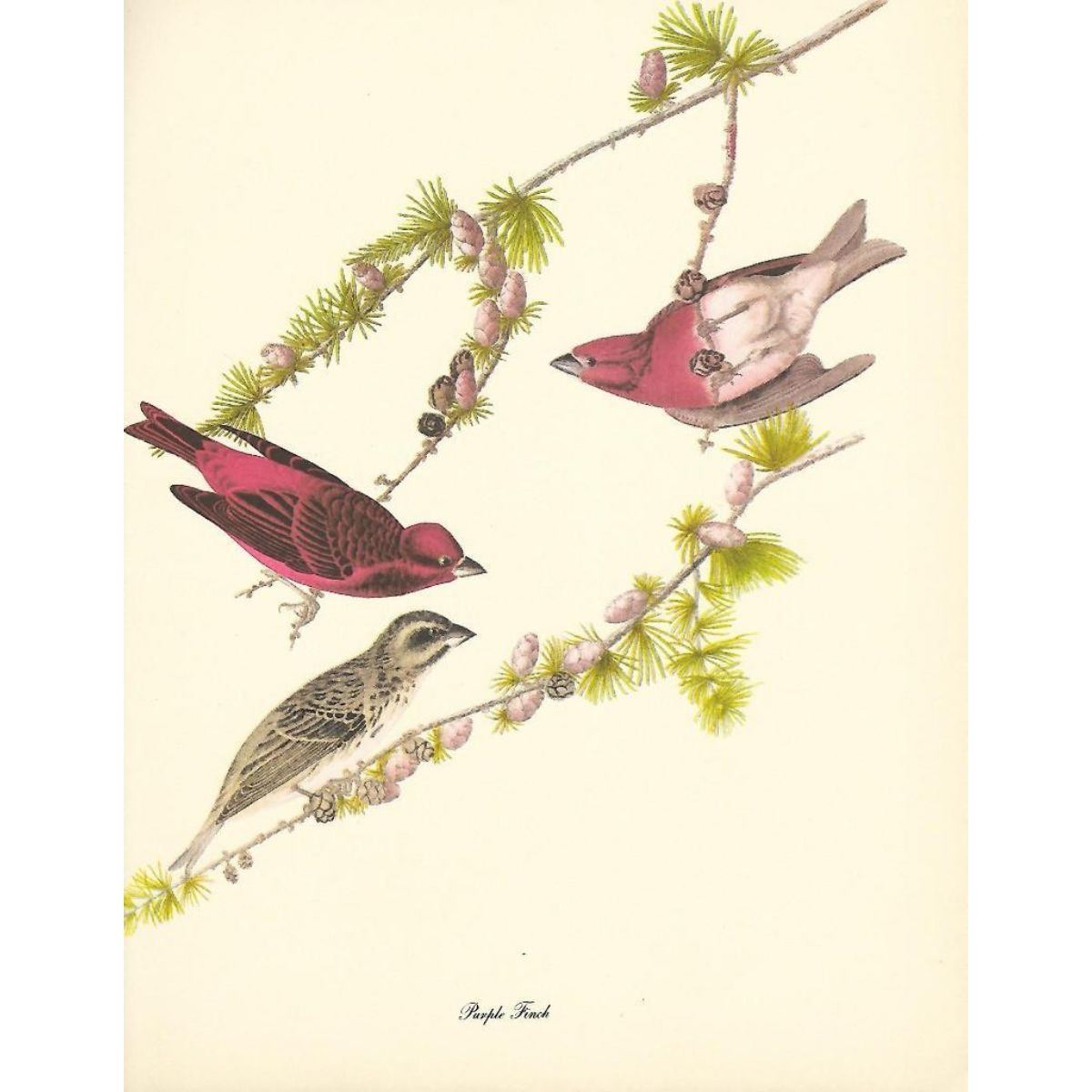 c1950 Audubon print, Purple Finch - vintage print, from the collection, " Audubon - Fifty Selections With Commentaries by Roger Tory Peterson". 9" X 12" print size. Comes with 11" X 14" mat board.
