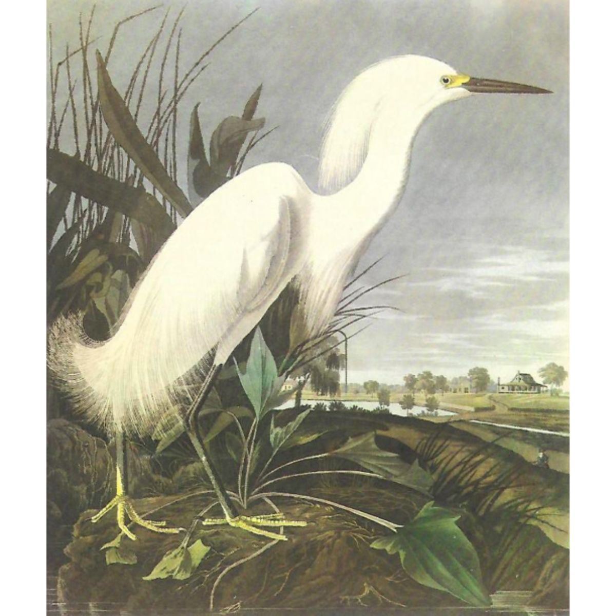 c1950 Audubon print, Snowy Egret - vintage print, from the collection, " Audubon - Fifty Selections With Commentaries by Roger Tory Peterson". 9" X 12" print size. Comes with 11" X 14" mat board.