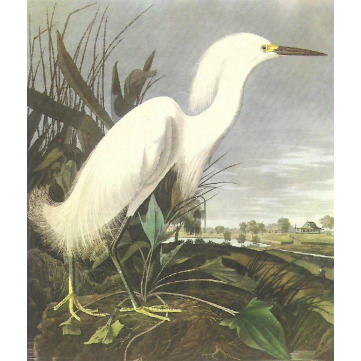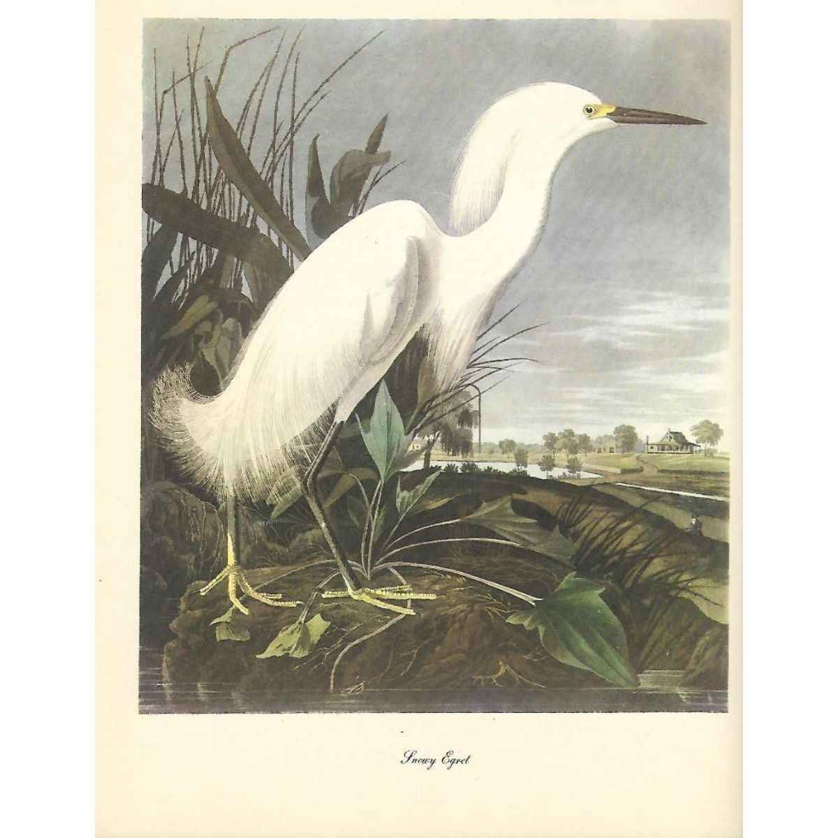 c1950 Audubon print, Snowy Egret - vintage print, from the collection, " Audubon - Fifty Selections With Commentaries by Roger Tory Peterson". 9" X 12" print size. Comes with 11" X 14" mat board.