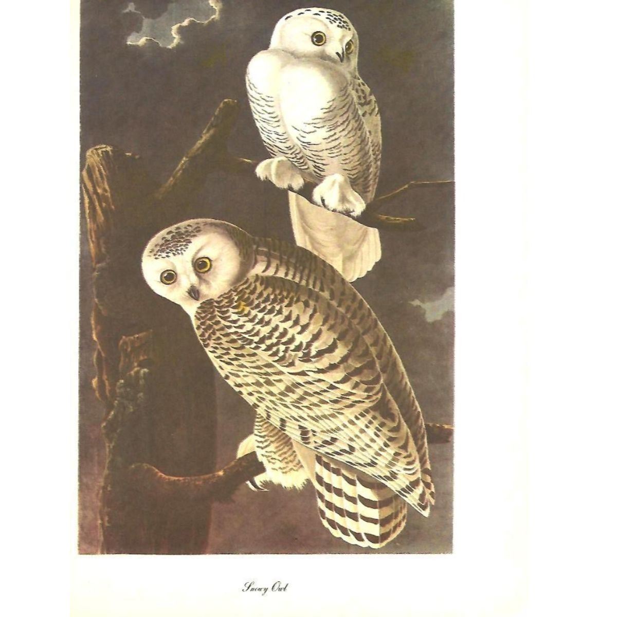 c1950 Audubon print, Snowy Owl - vintage print, from the collection, " Audubon - Fifty Selections With Commentaries by Roger Tory Peterson". 9" X 12" print size. Comes with 11" X 14" mat board.