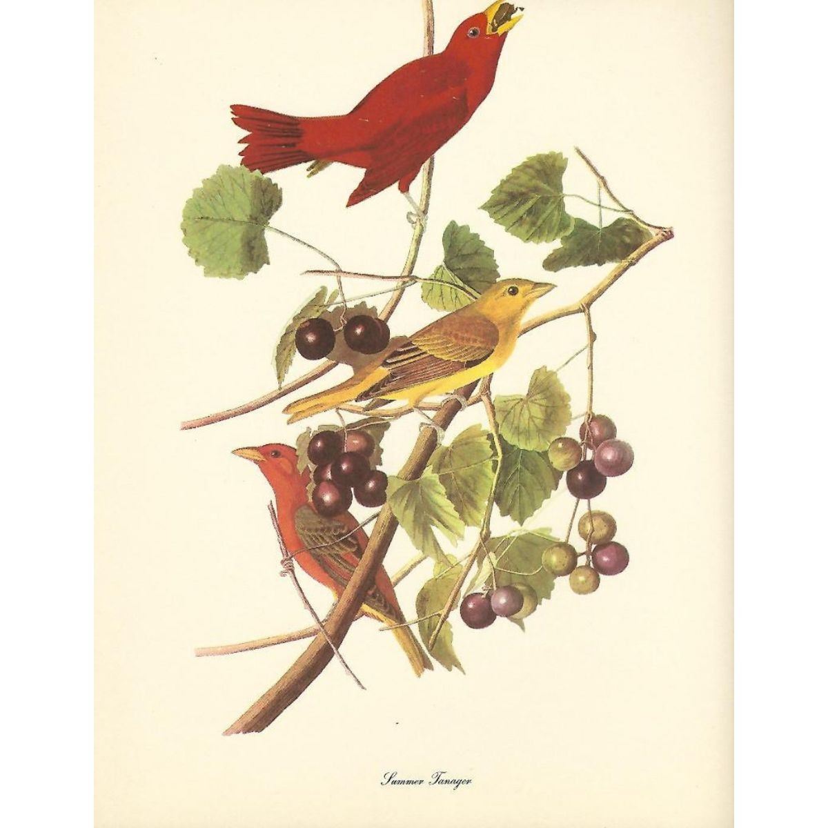 c1950 Audubon print, Summer Tanager - vintage print, from the collection, " Audubon - Fifty Selections With Commentaries by Roger Tory Peterson". 9" X 12" print size. Comes with 11" X 14" mat board.