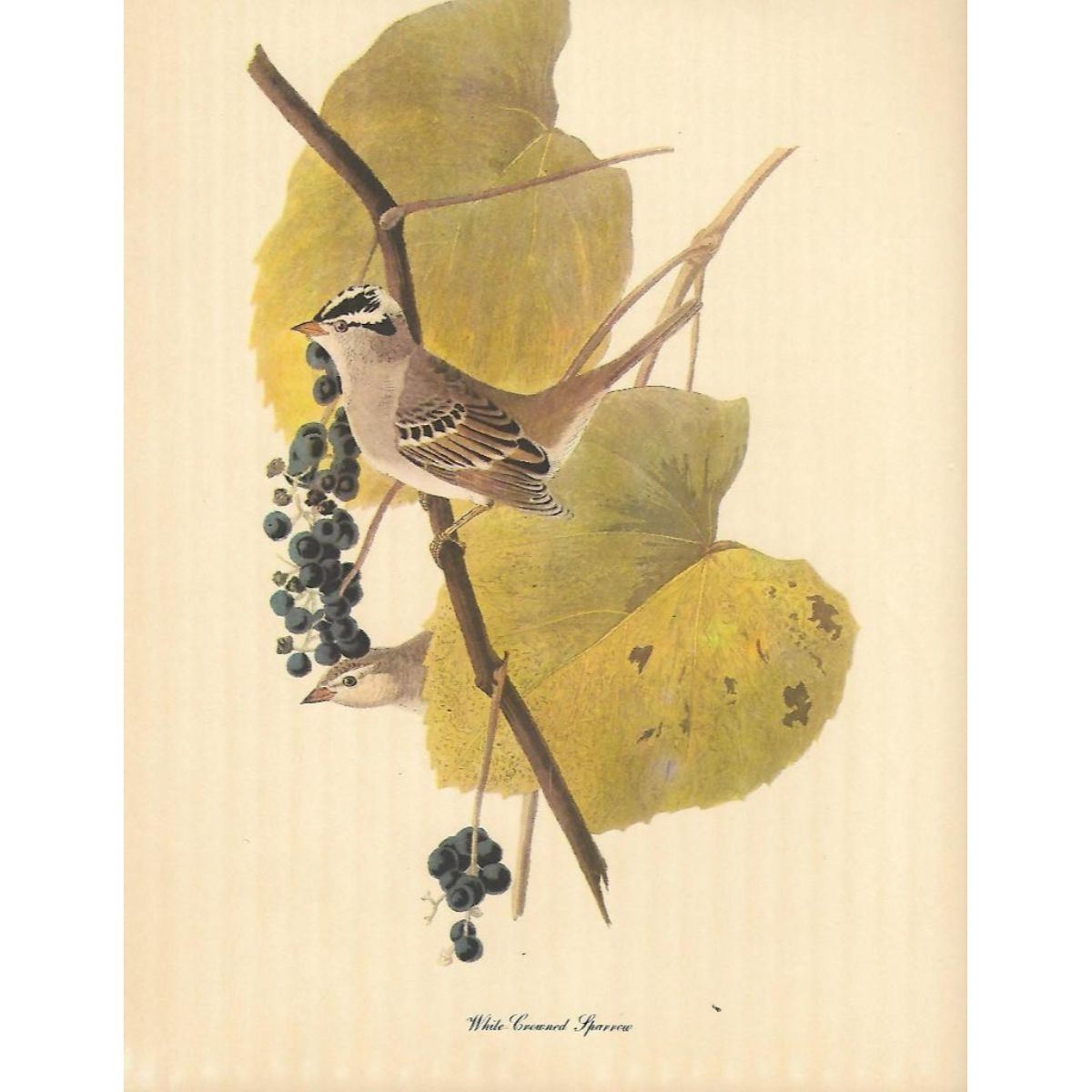 c1950 Audubon print, White-Crowned Sparrow - vintage print, from the collection, " Audubon - Fifty Selections With Commentaries by Roger Tory Peterson". 9" X 12" print size. Comes with 11" X 14" mat board.