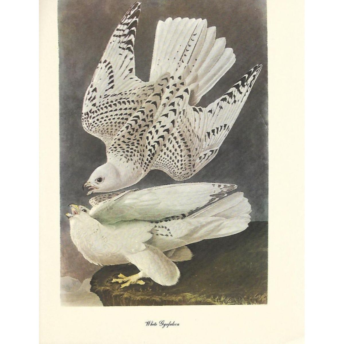 c1950 Audubon print, White Gyrfalcon - vintage print, from the collection, " Audubon - Fifty Selections With Commentaries by Roger Tory Peterson". 9" X 12" print size. Comes with 11" X 14" mat board.