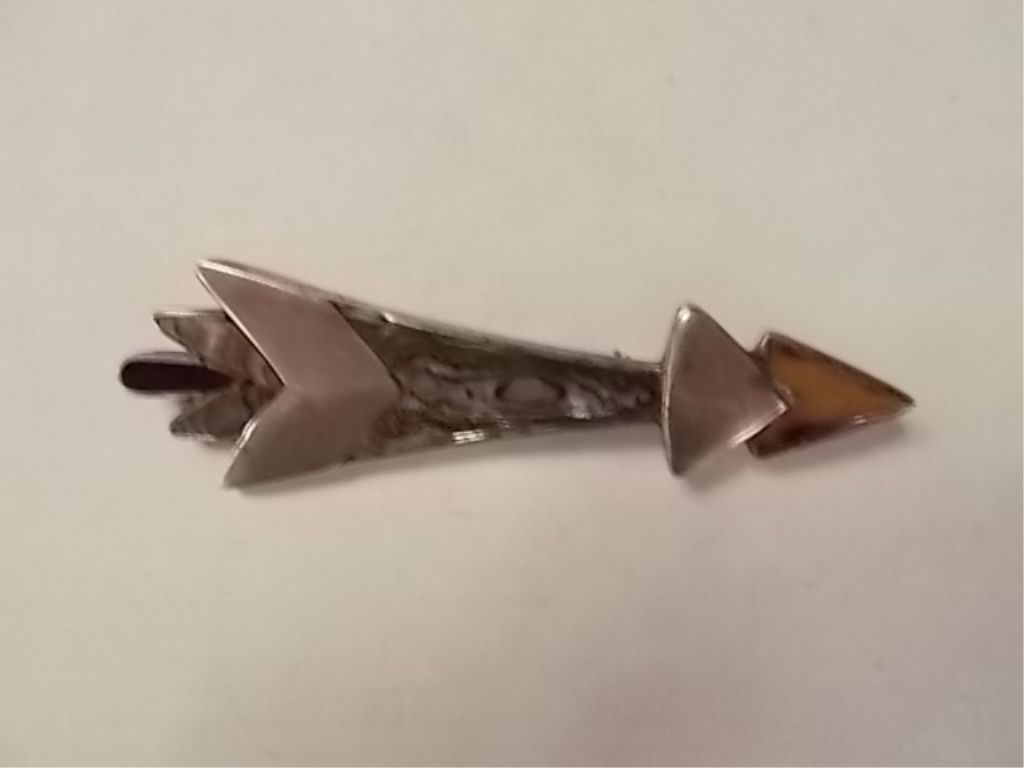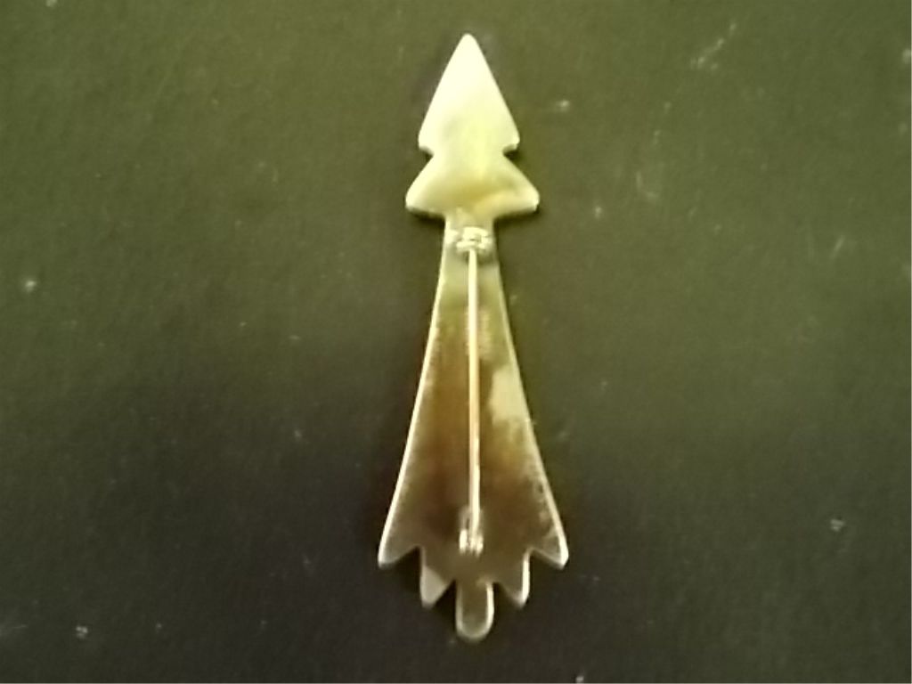 Exquisite c1950 Mexican sterling silver, abalone, tortoise shell and jet pin. Approximate 3 ½” x 1 ½”