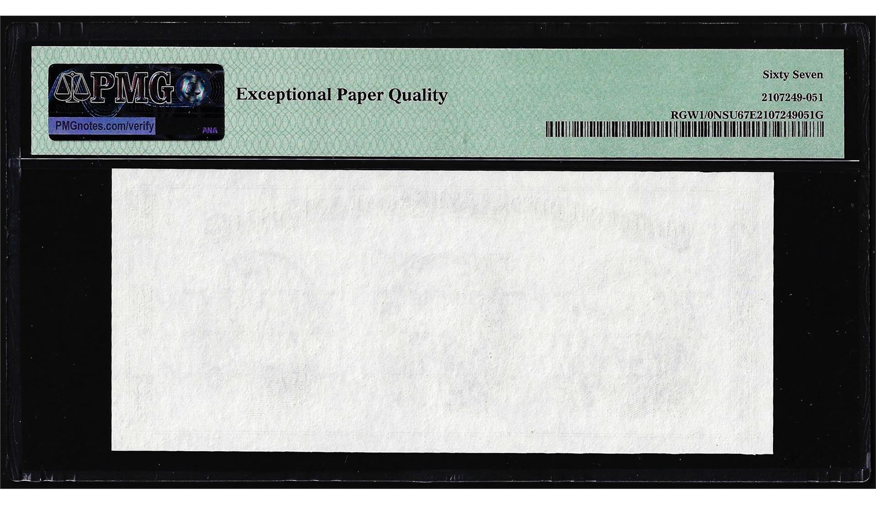 One ca. 1970's Washington Center Giori Test Ink Smear Error Note PMG Superb Gem Unc. 67EPQ. PMG Certified.