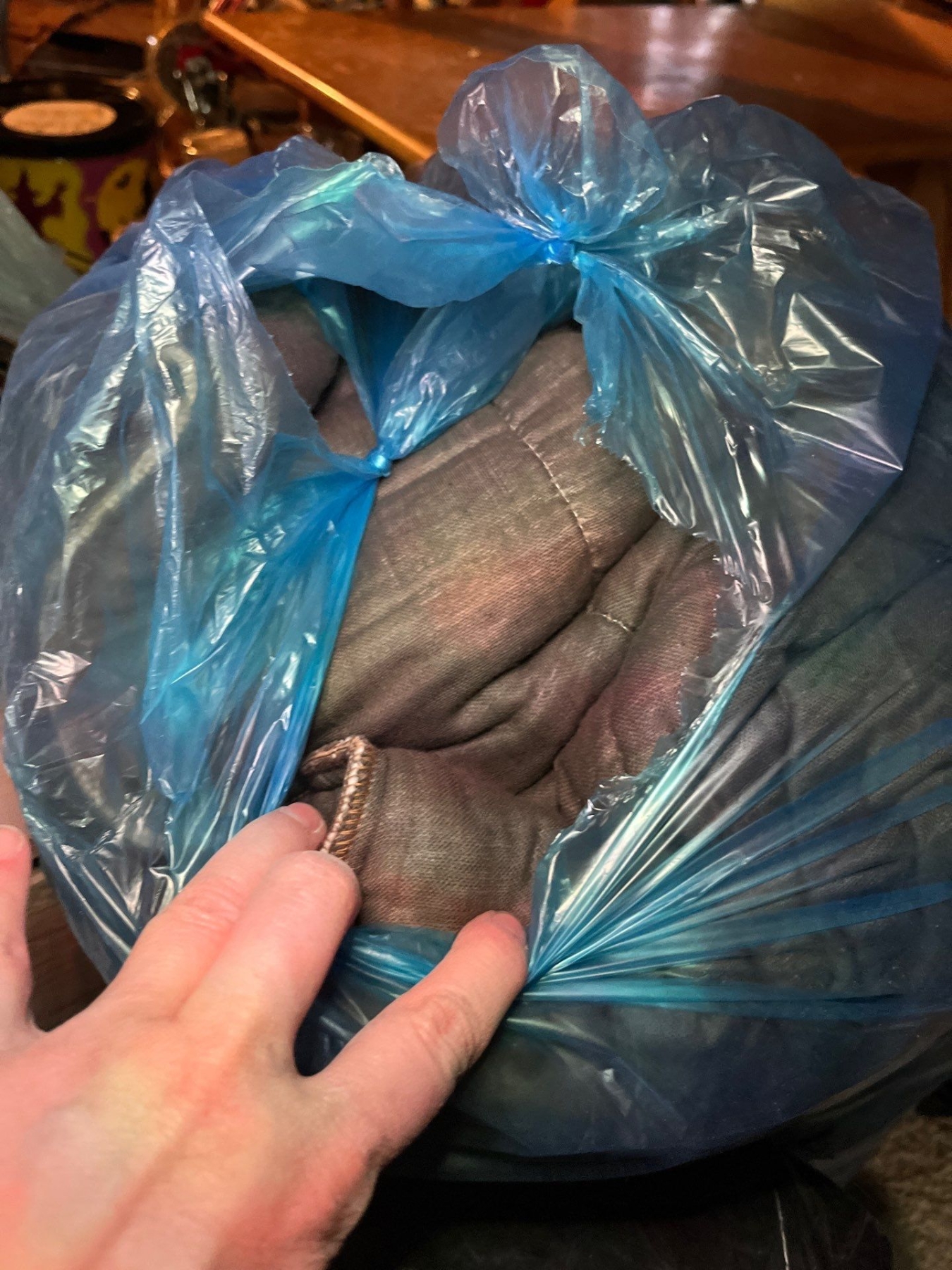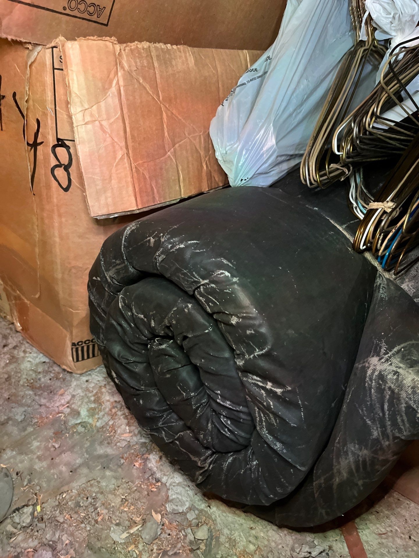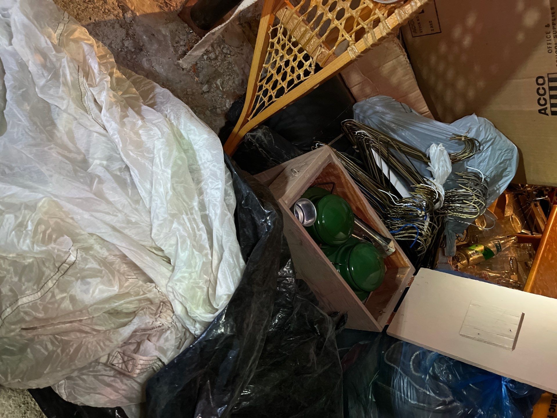 camping gear. Padded insulated bedding, 2 Colman lanterns, heavy blankets and a parachute and metal coat hangers