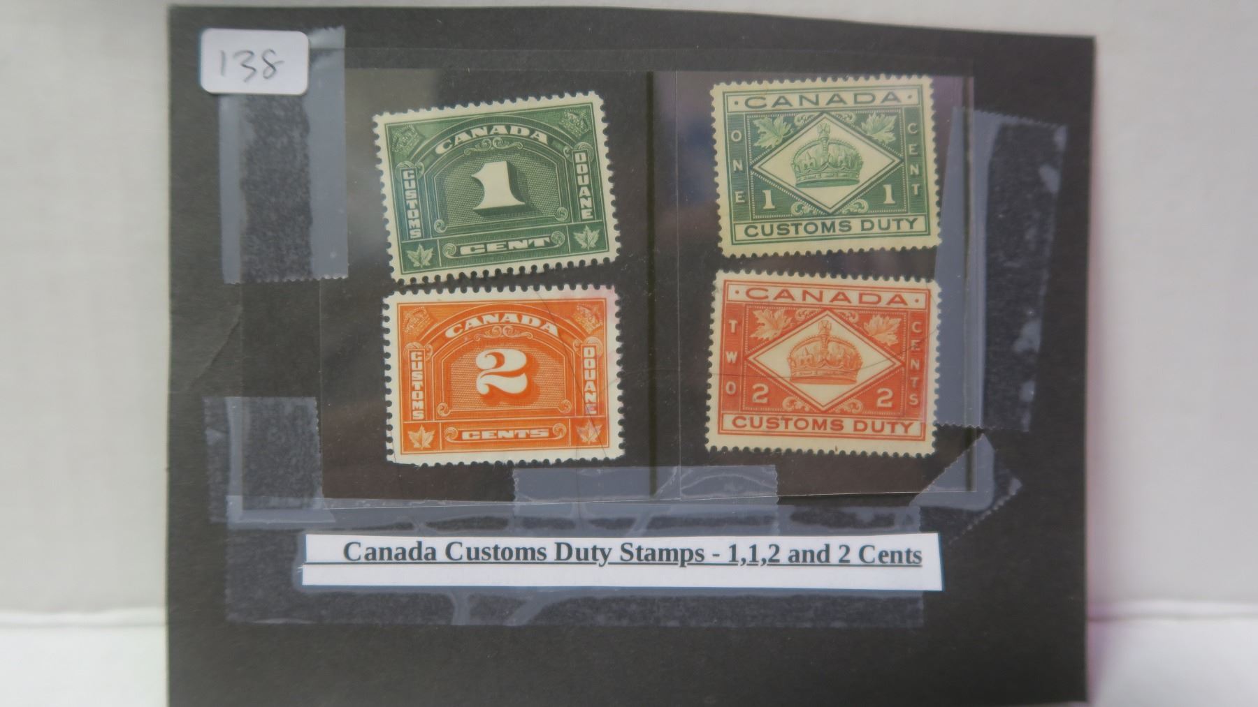 canada customs duty stamps - 1, 1, 2 and 2 cent