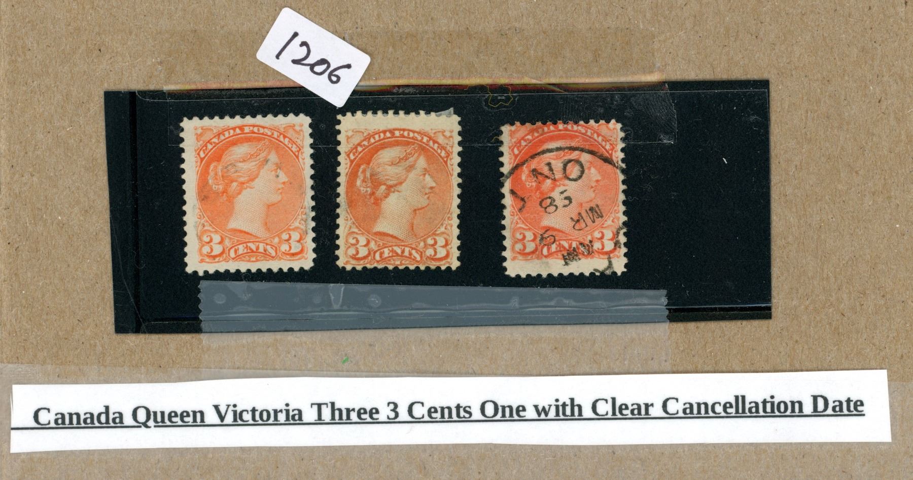 canada queen victoria three 3 cents one with clear cancellation date