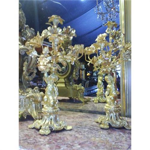 a pair of candlesticks exellent quality guilded bronze, with putti and flowers 19th c