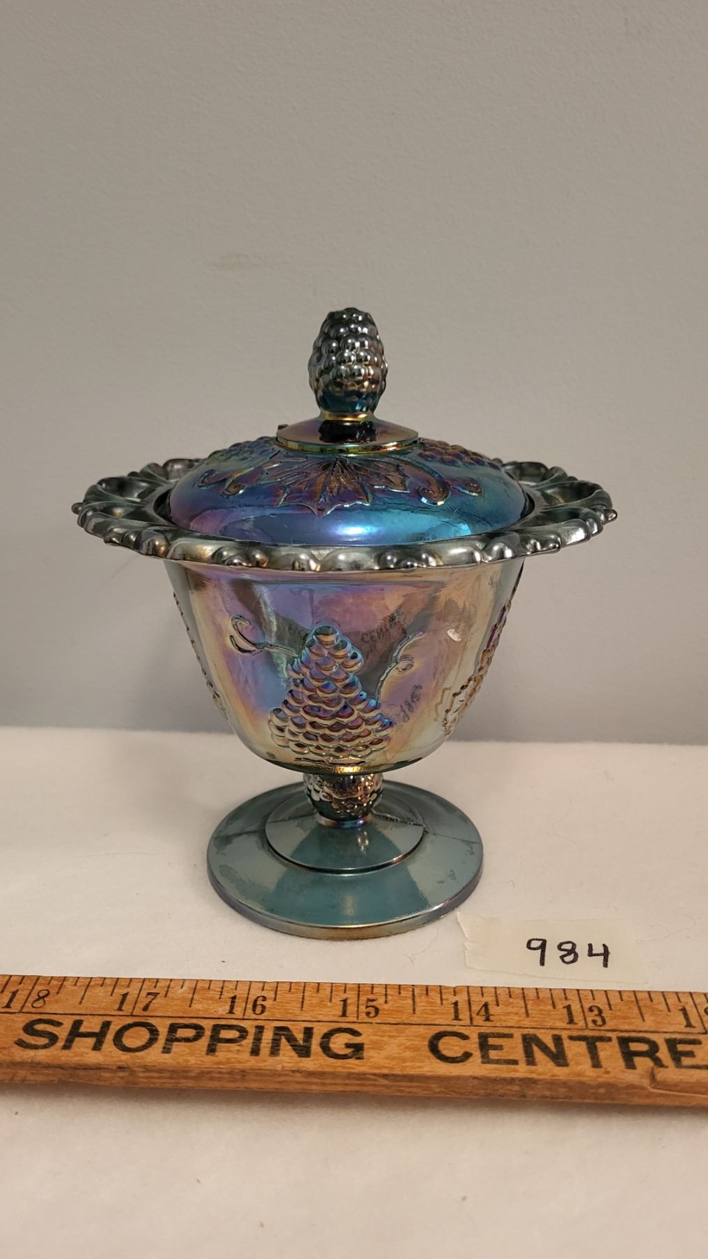 carnival blue covered compot